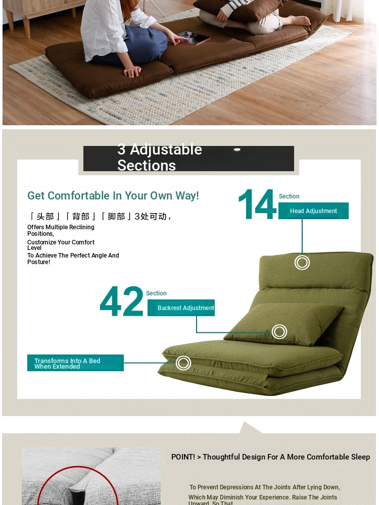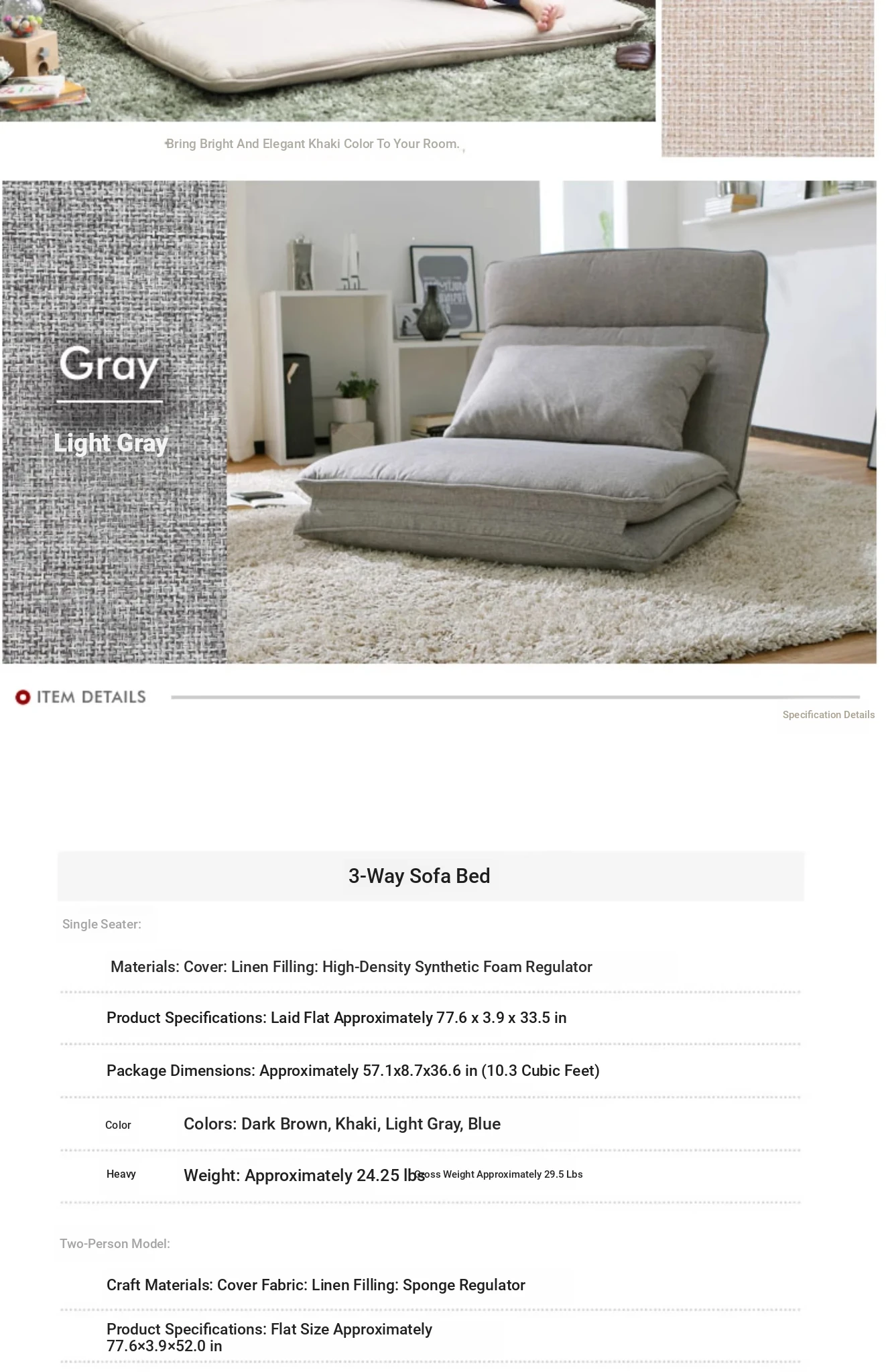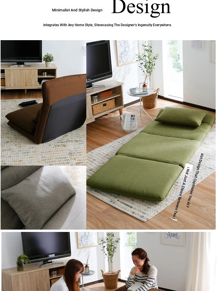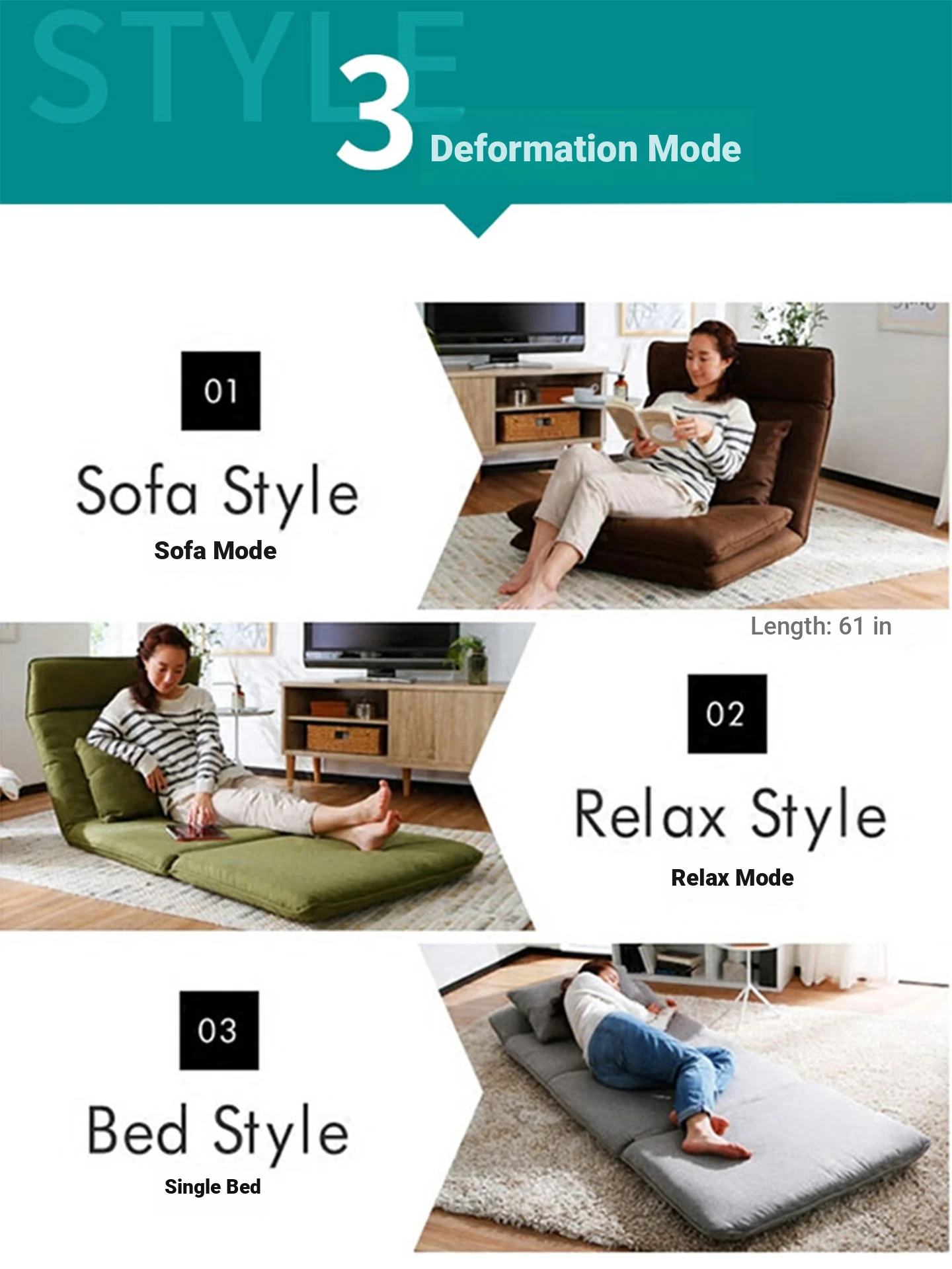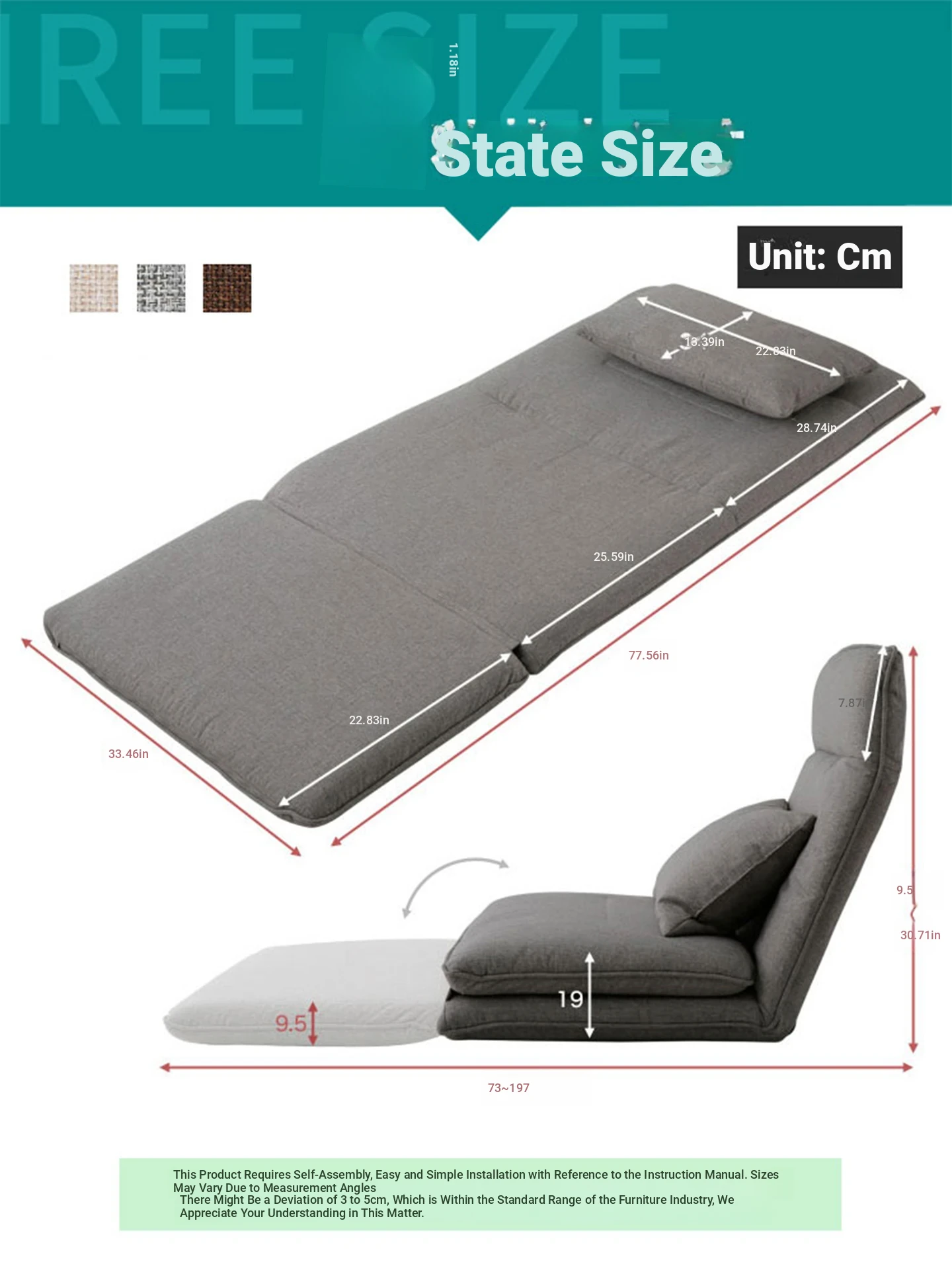 Japanese Tatami Sofa Bed - Foldable Single Bed for Small Spaces, Perfect for Lounging or Sleeping in Bedrooms and Living Rooms