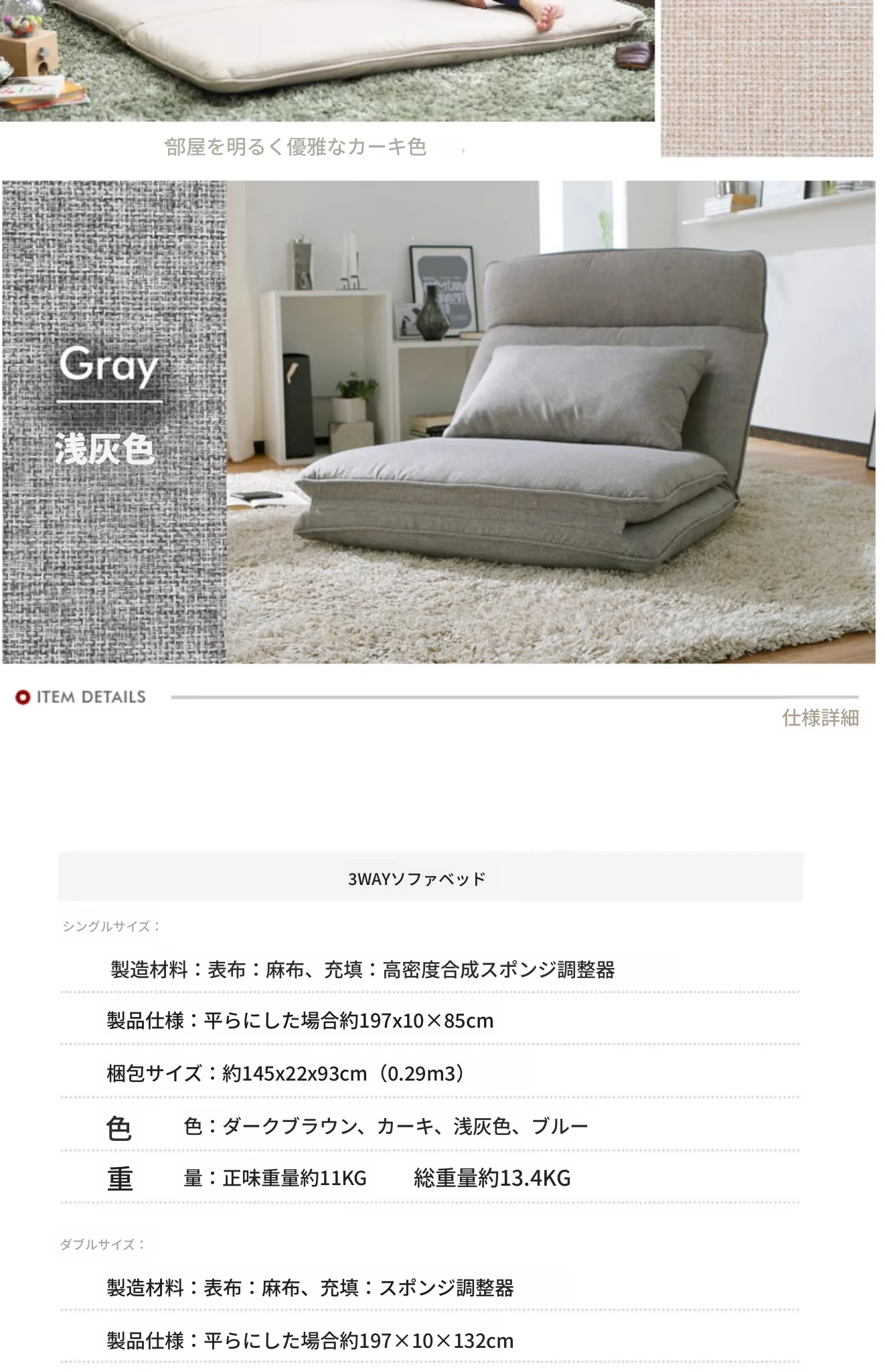 ミディアムグレー(展開:幅85cm、長さ197cm)