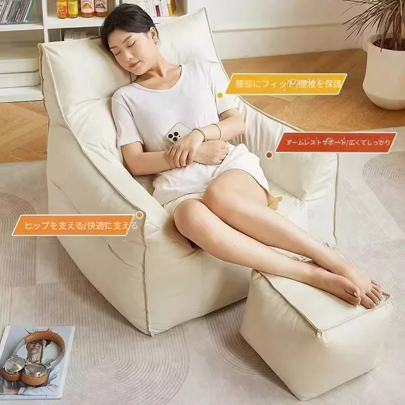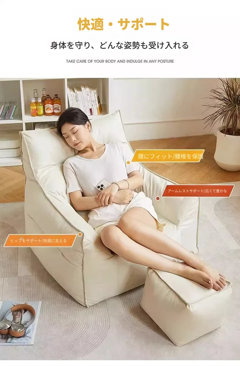 リラックス豆袋ソファ|寝転んでも眠れる!タタミスタイルのクリーム色、寝室やリビング、バルコニーにぴったりの一人用カジュアルソファ。快適な座り心地で、あなたのリラックスタイムをサポートします!