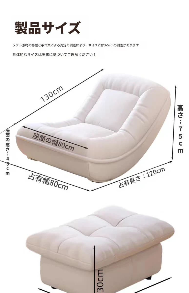 【単椅子】クリームホワイト+ミルクベルベット(フットレスト付き)