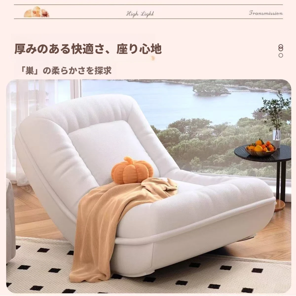 【単椅子】クリームホワイト+ミルクベルベット