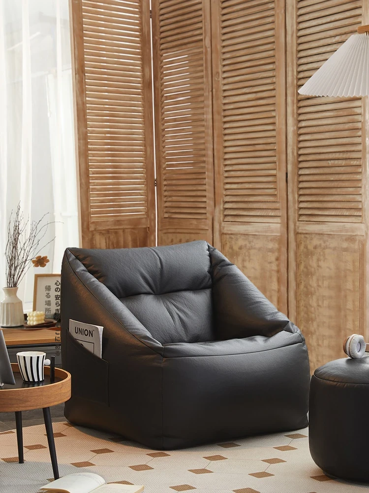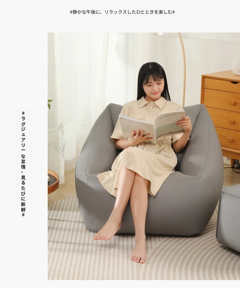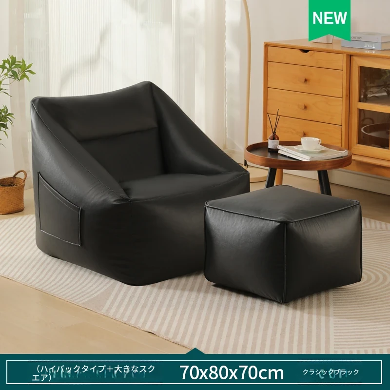 リラックスできる黒の一人用ソファ、タタミスタイルで小さなリビングや寝室、バルコニーに最適! Lazyなあなたにぴったりの読書や休憩に最適なアイテム。快適さとスタイルを兼ね備えたミニマルデザイン!