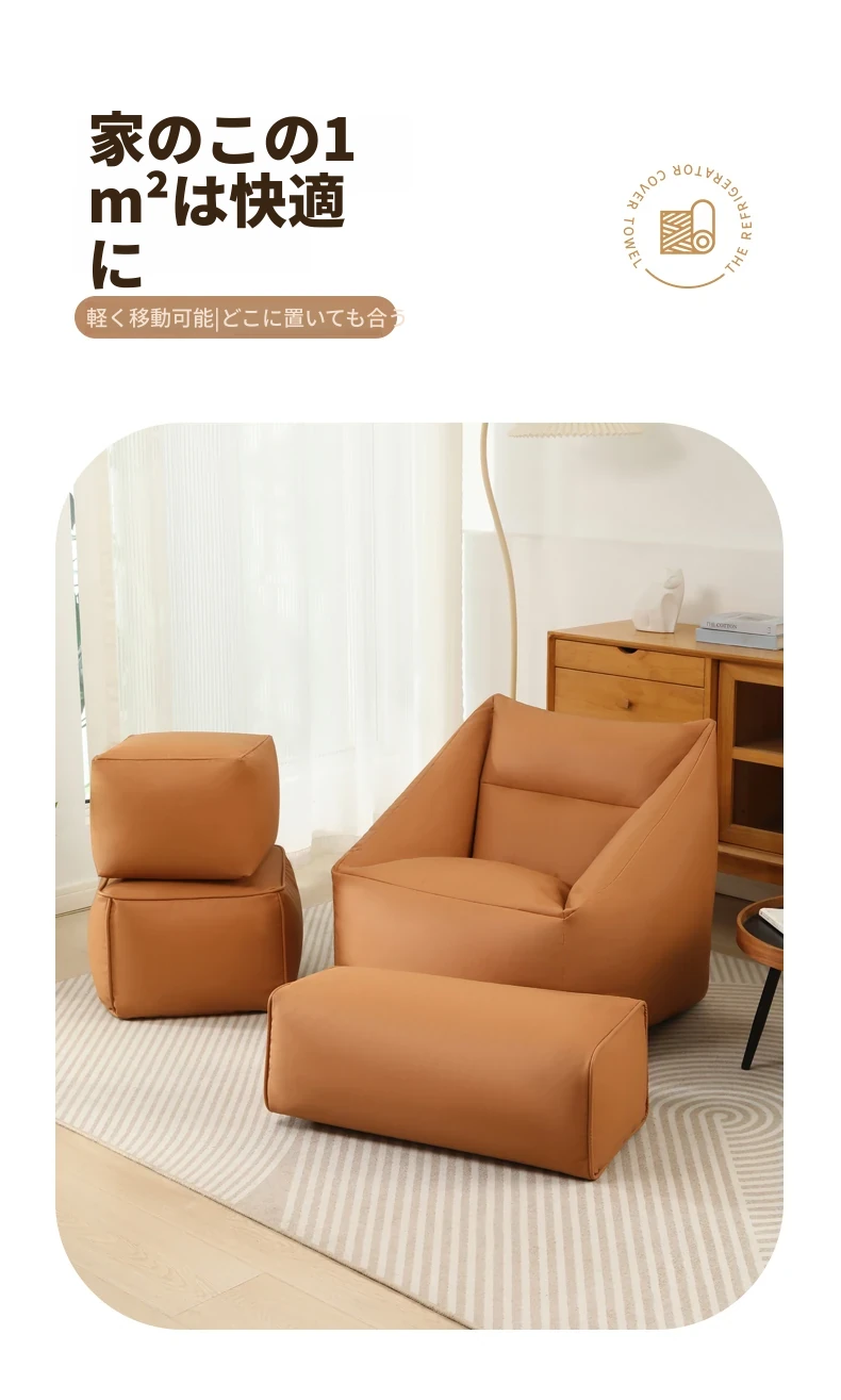 オレンジ色 - 超合成皮革【環境に優しいEPS充填】+ スツール