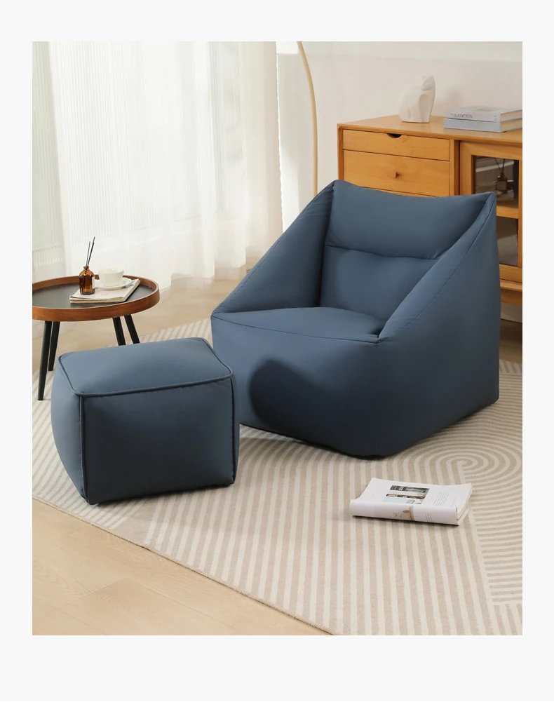 ディープブルー - 超ファイバー皮革【環境に優しいEPS充填】+ スツール