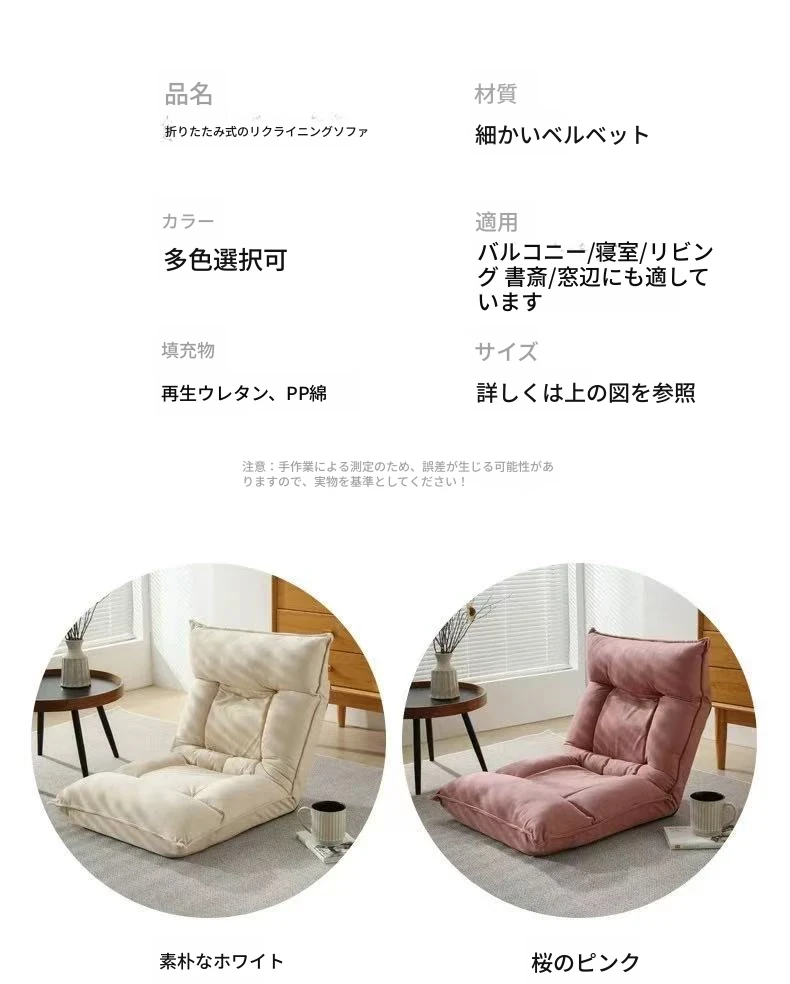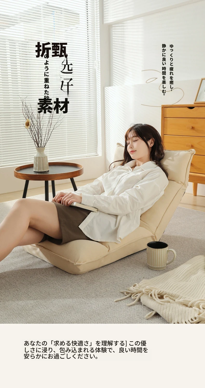 リラックスできる懶人ソファ!バルコニーや窓辺にぴったりな折りたたみ式背もたれ付き椅子。タタミやベッド上でも使える、心地よいクッションで一人用の小さなソファ。快適なひとときをお楽しみください!