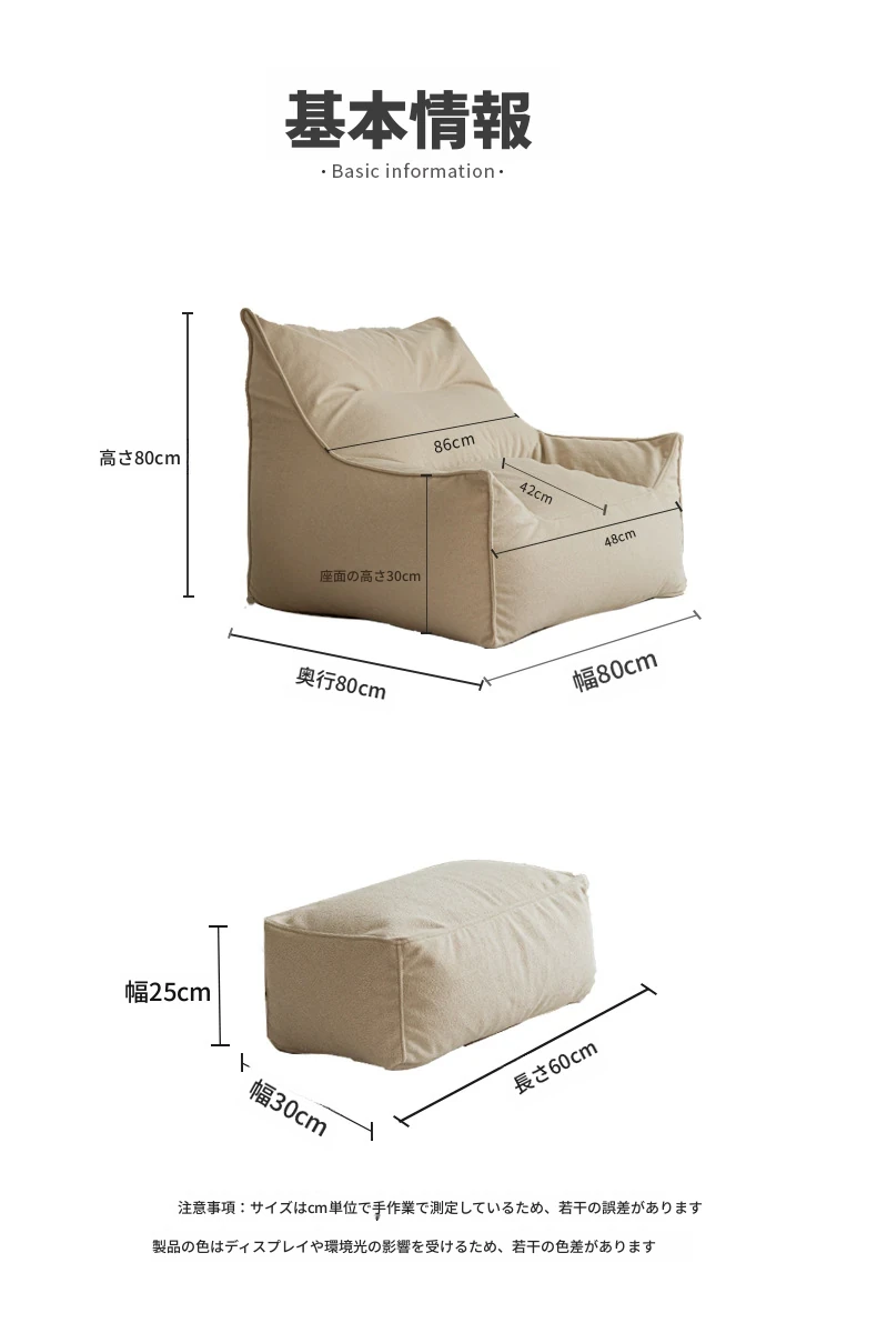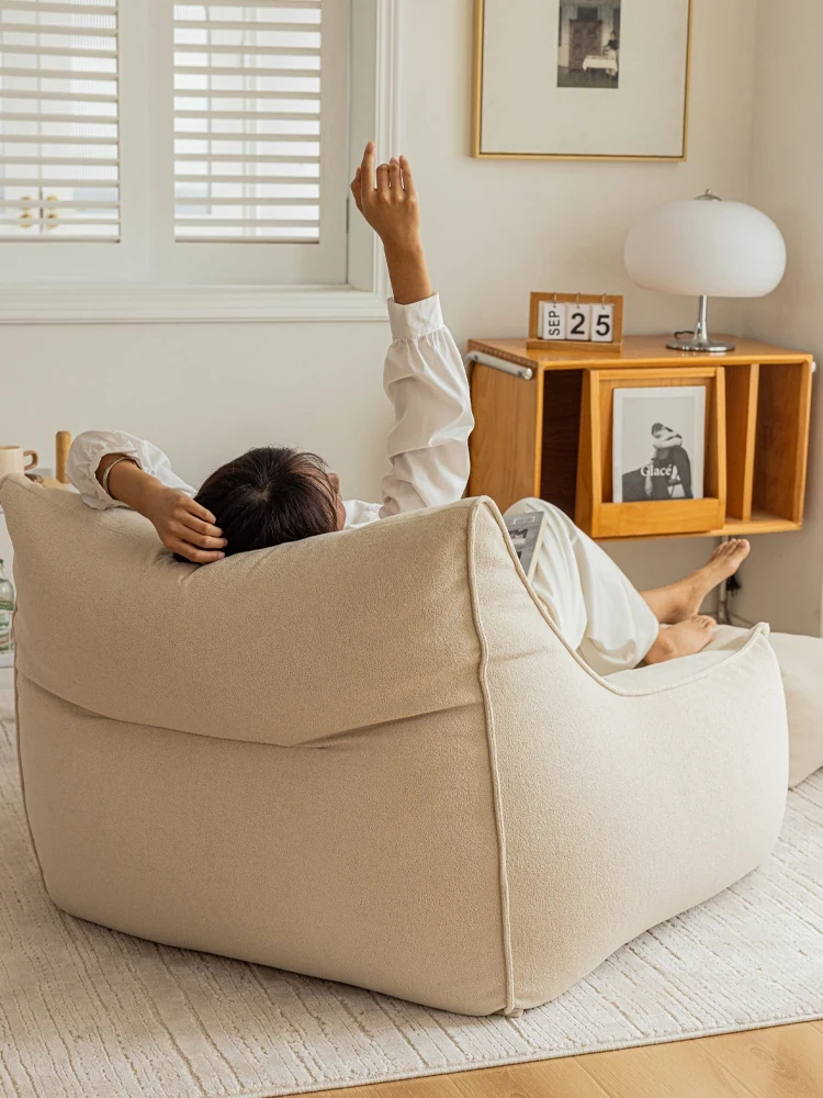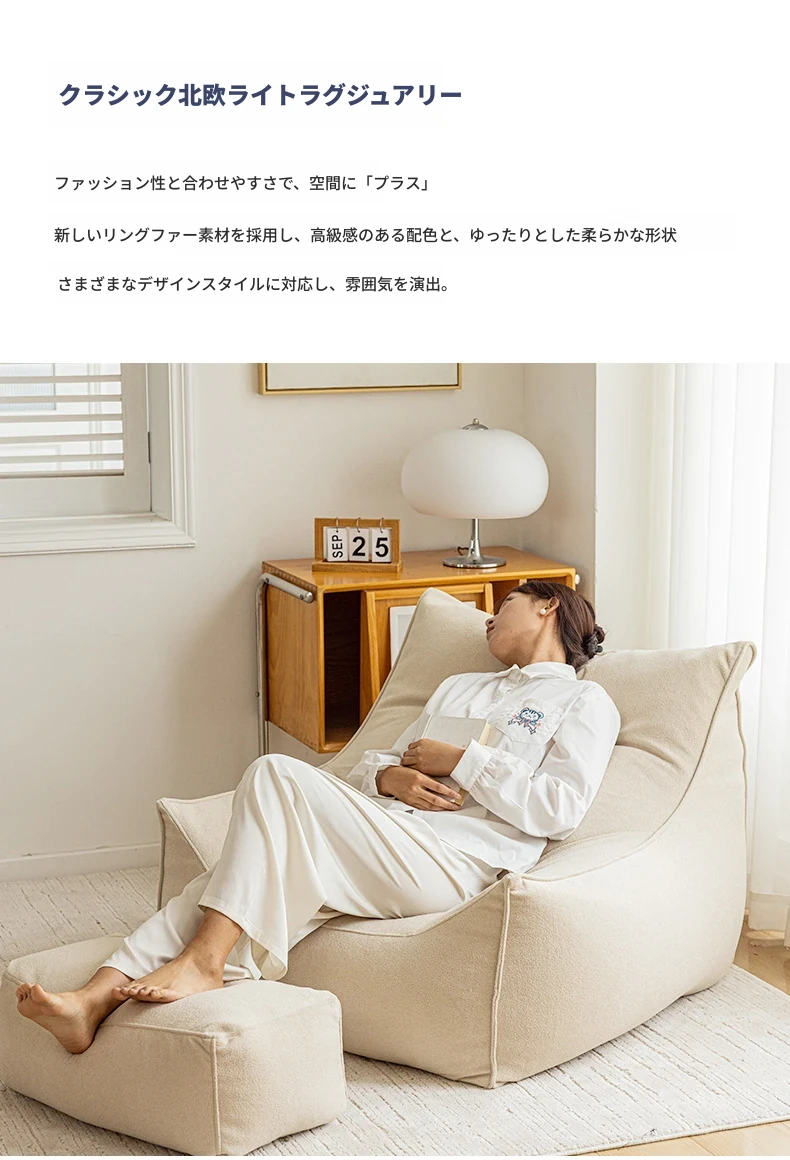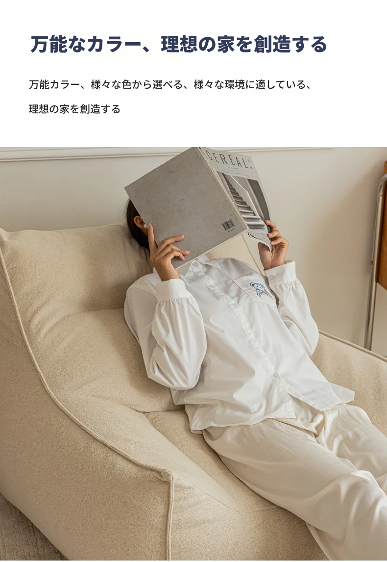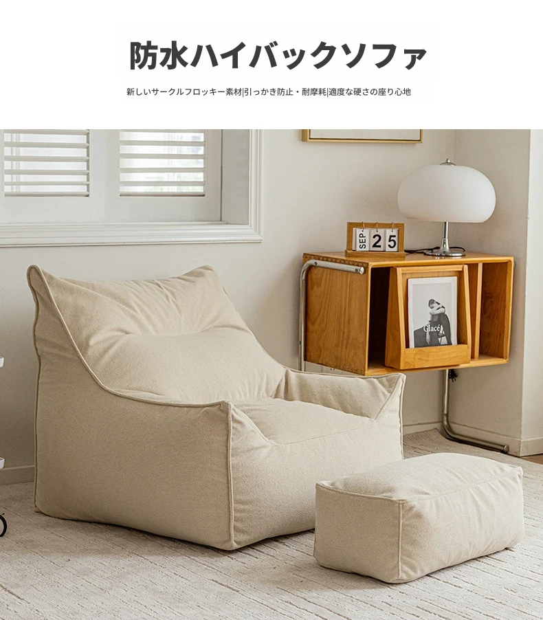 くつろぎのリクライニングソファチェア!寝転んでも快適な豆袋ソファ、リビングやバルコニーにぴったり。長時間座っても疲れない、あなたの特別な一人用ソファ。