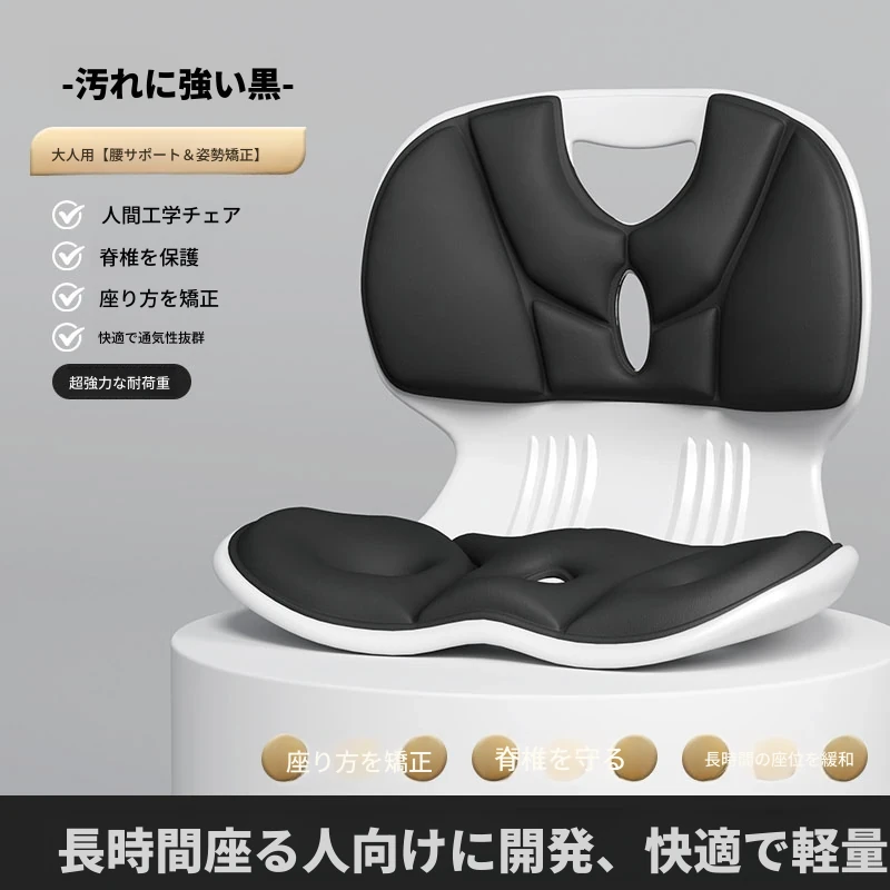 【成人向けビッグサイズ】✅オブシディアンブラック【高耐荷重 透気生地】オフィス専用