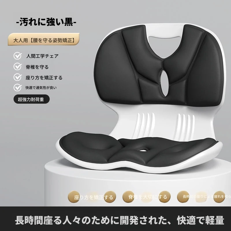 【成人大きめ】✅オブシディアンブラック【高耐荷重 透湿素材】オフィス専用