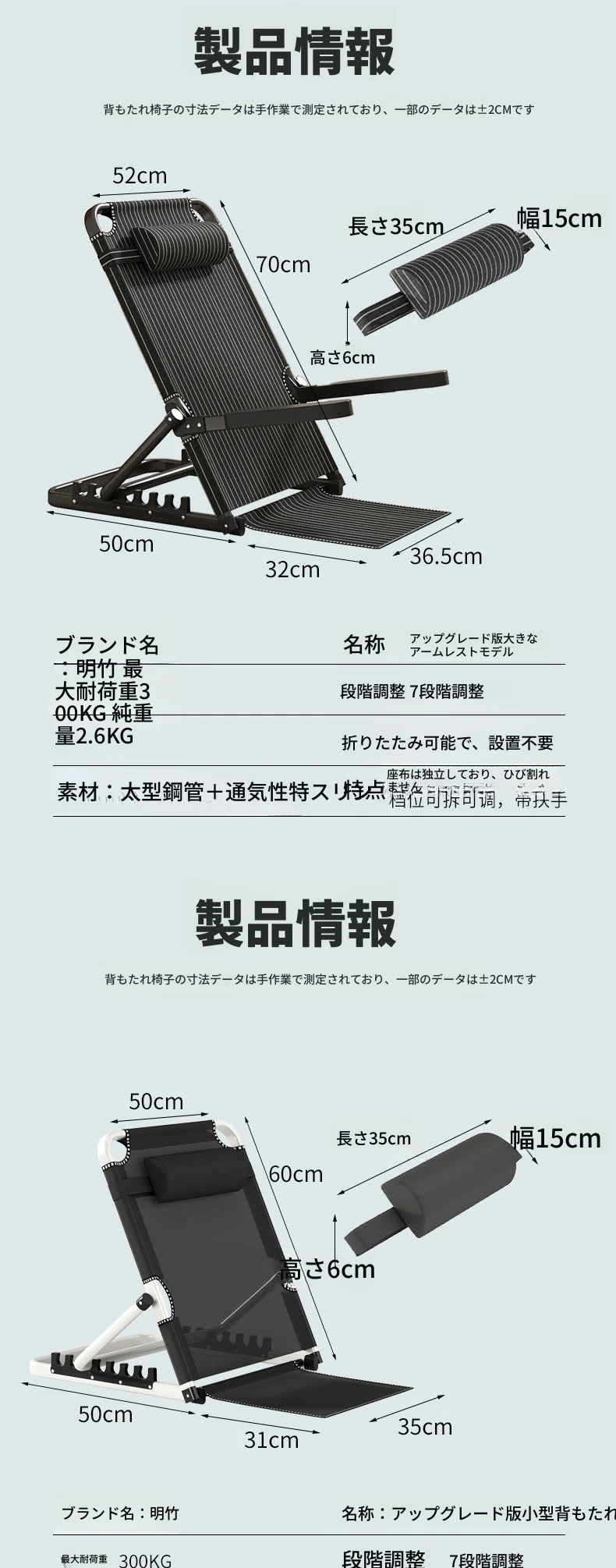ストライプ通気性-アーム付き-高さ70センチ(調節可能なクッション)