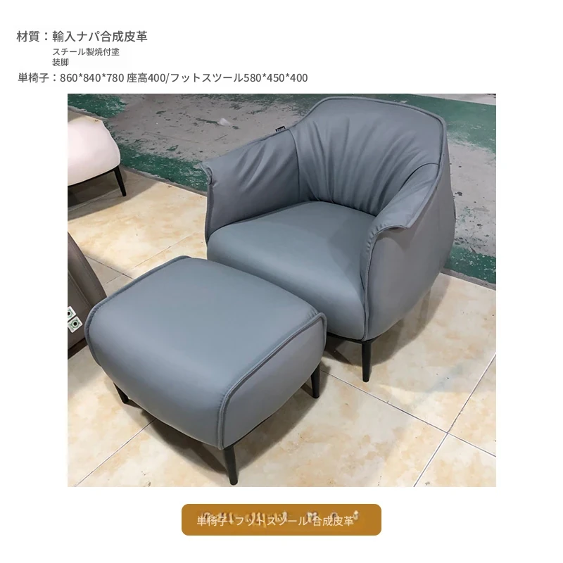 淡灰色の1人掛け椅子+オットマン-フェイクレザー