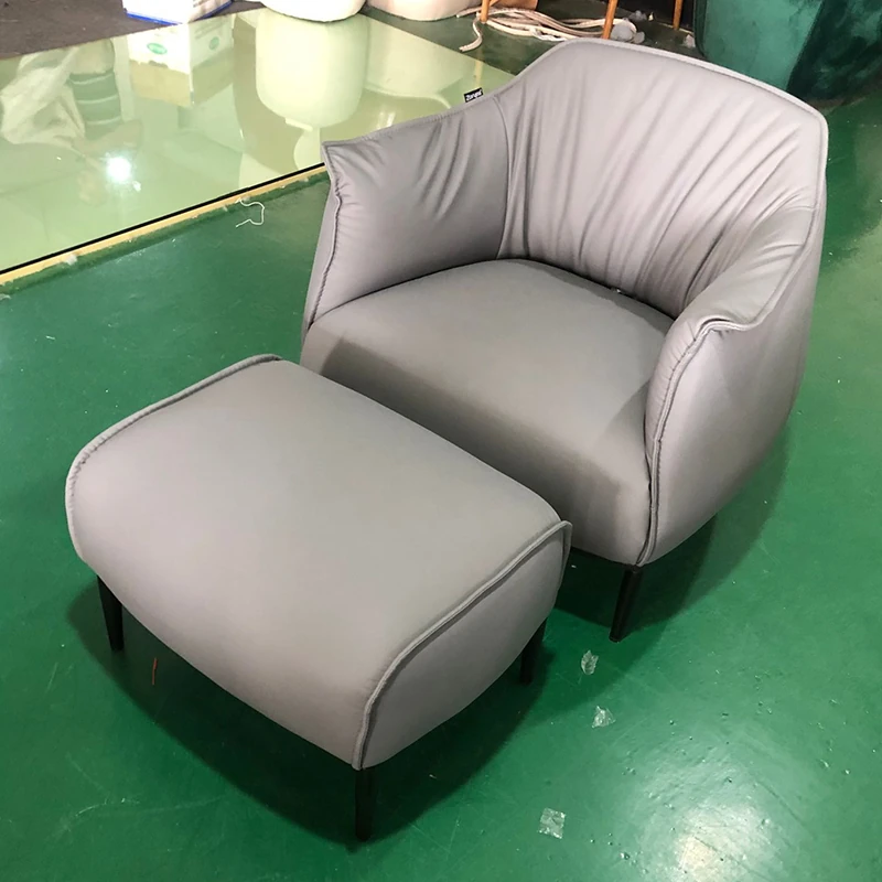 煙灰色の1人掛け椅子+オットマン-フェイクレザー