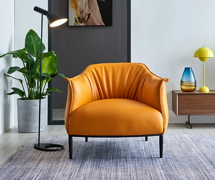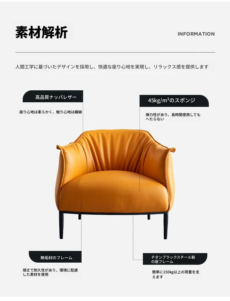 一人掛けソファ 本革 使用 小型住宅向け リビングルームにぴったり!軽やかなラグジュアリー タイガーチェア イタリアンミニマルデザイン バルコニーにも最適なリラックスチェア