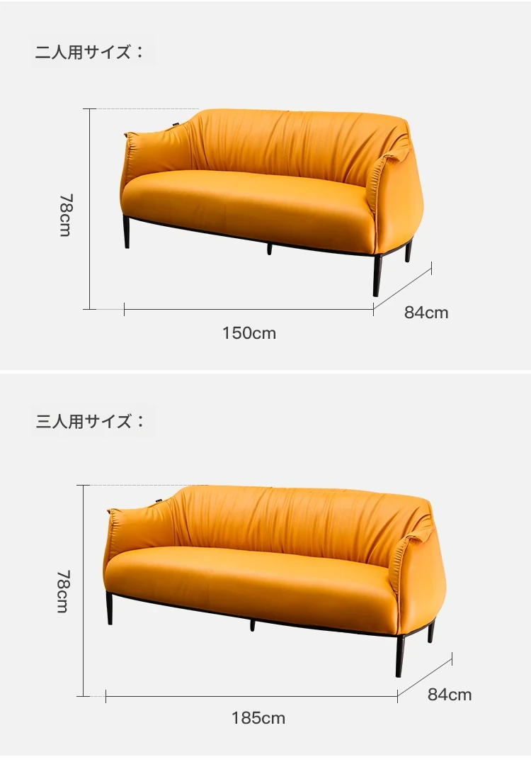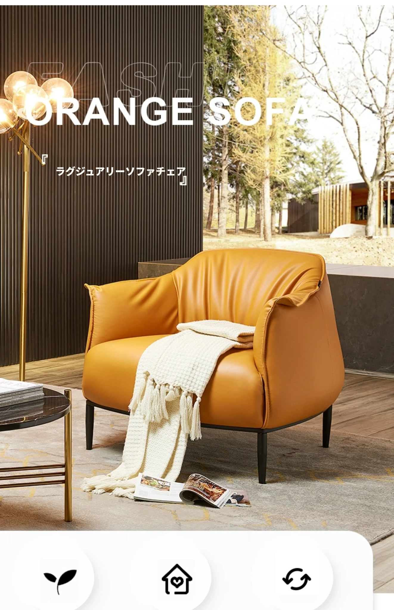 オレンジ-1人掛け椅子+オットマン接触面本革