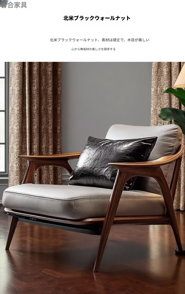 北米産ブラックウォールナット・リラックス一人掛けソファ|ラグジュアリーで快適なリビング空間を演出する高級感あふれるウッド製リクライニングチェア