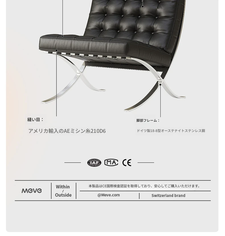 MEVEバルセロナチェア デザイナーズレトロ 厳選された本革使用の快適な一人掛けソファ 機能的でスタイリッシュなシンプルデザイン 家庭用リラックスチェア