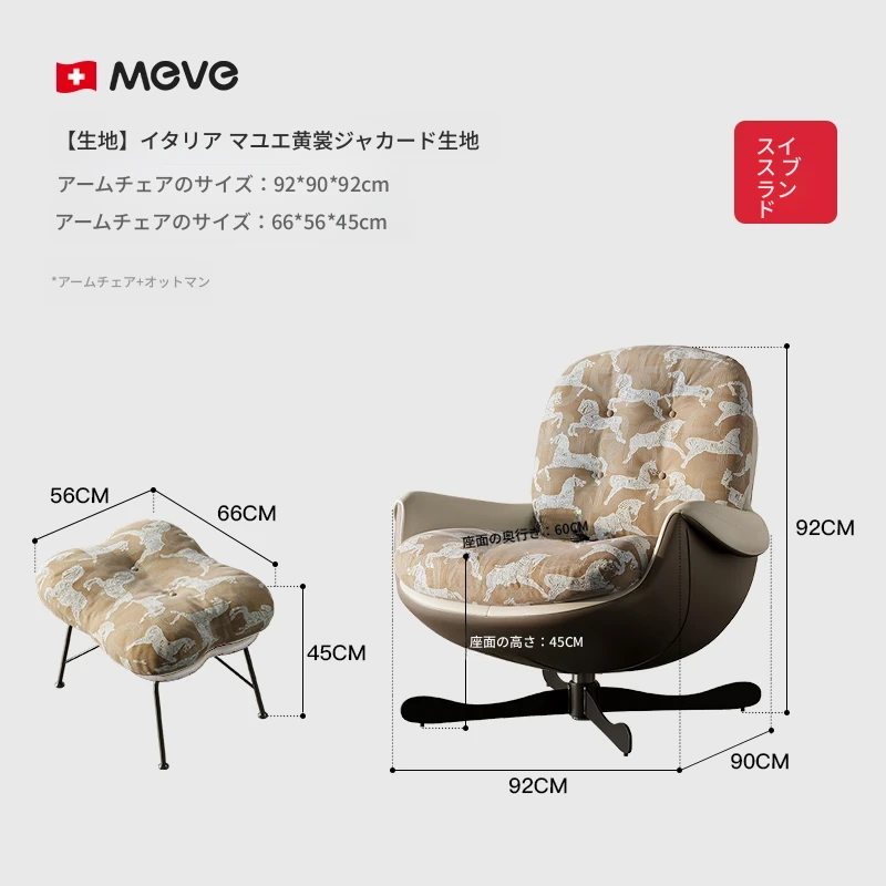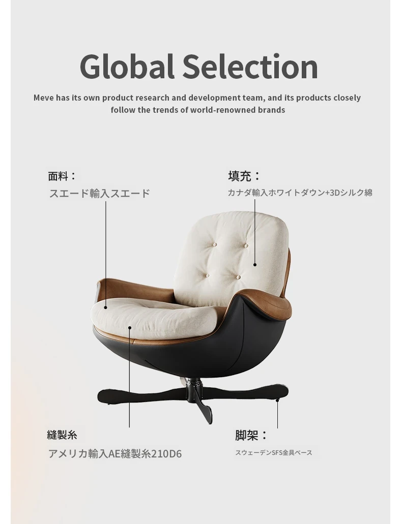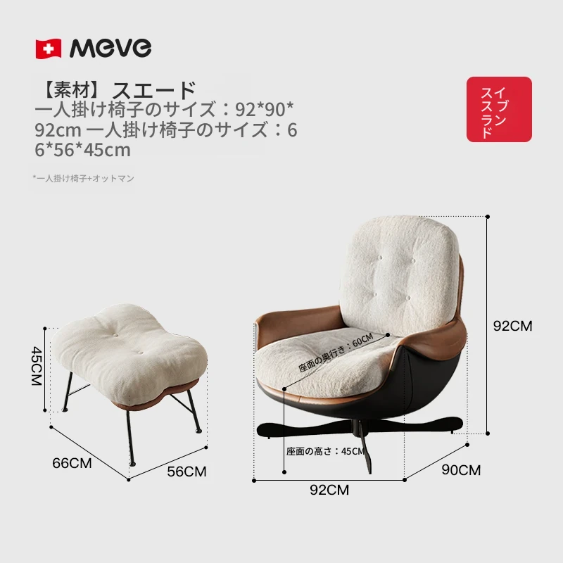 【スウェード+ダウン】ミノティス回転椅子+オットマン