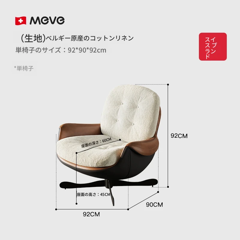 MEVEデザイナーの一人用回転椅子 - イタリアンミニマリズムの家用リビングリラックスチェア、現代的なラグジュアリー感漂う怠け者のためのスタイリッシュな回転椅子!