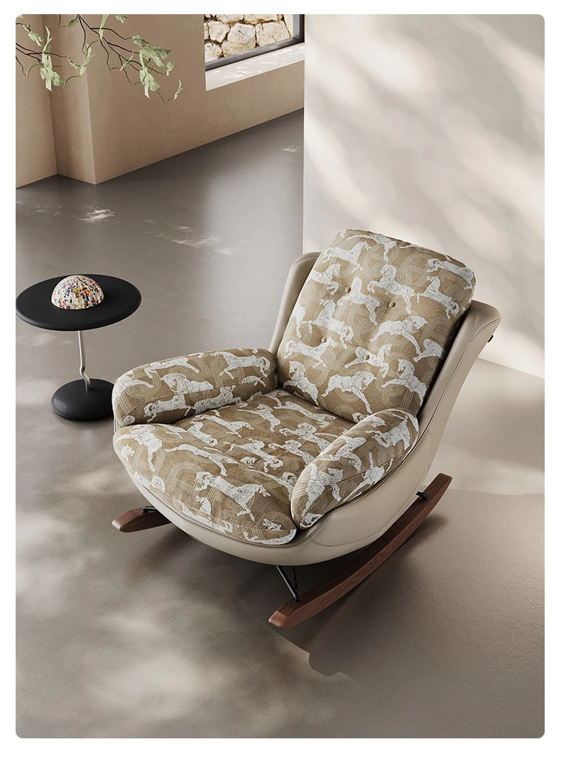 MEVEイタリアンデザインの一人用ロッキングチェア - モダンでシンプルなラグジュアリー、バルコニーやリビングにぴったりのリラックスチェア!あなたのくつろぎタイムを格上げします。
