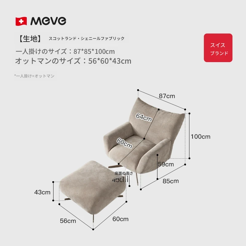 ベージュの単椅子+足置き-50DスポンジMDI【スコットランド輸入シェニールベルベット】