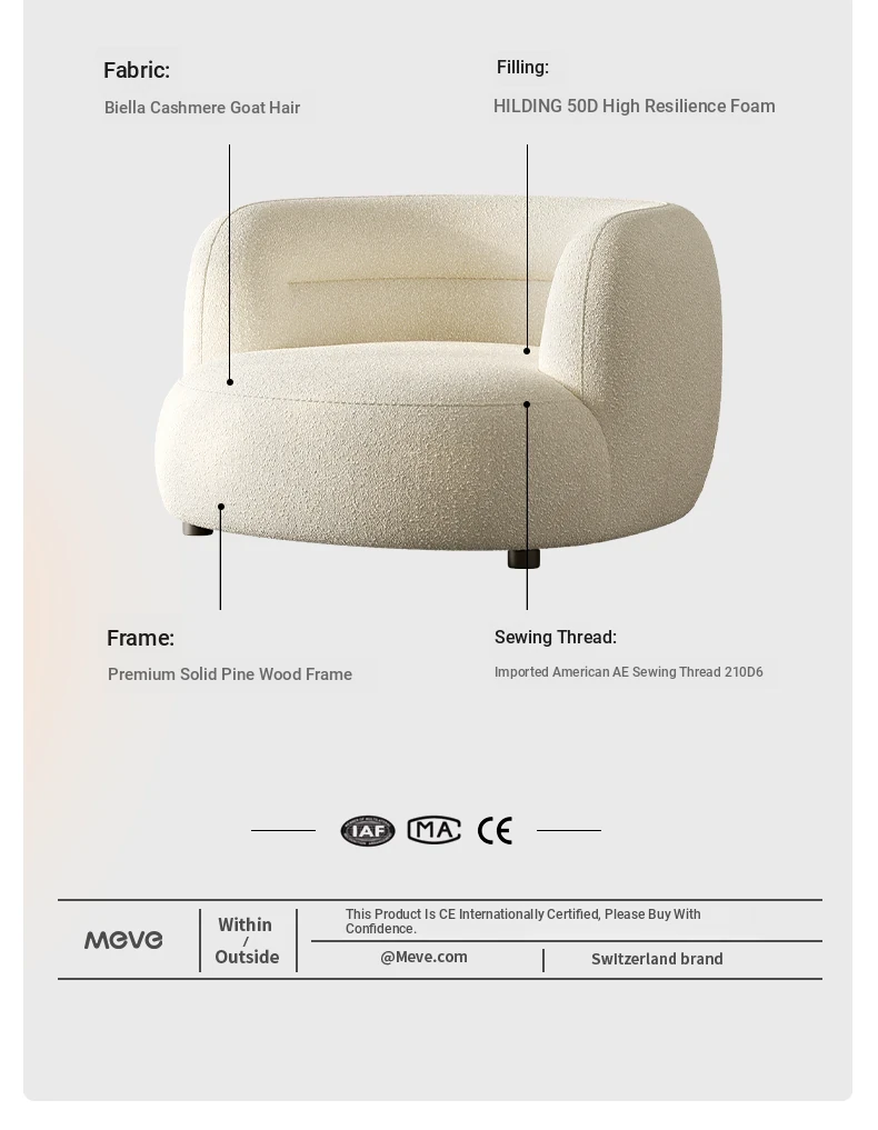 MEVE Italian Minimalist Armchair - Modern Nordic Single Sofa for Living Room - Stylish Designer Lazy Chair