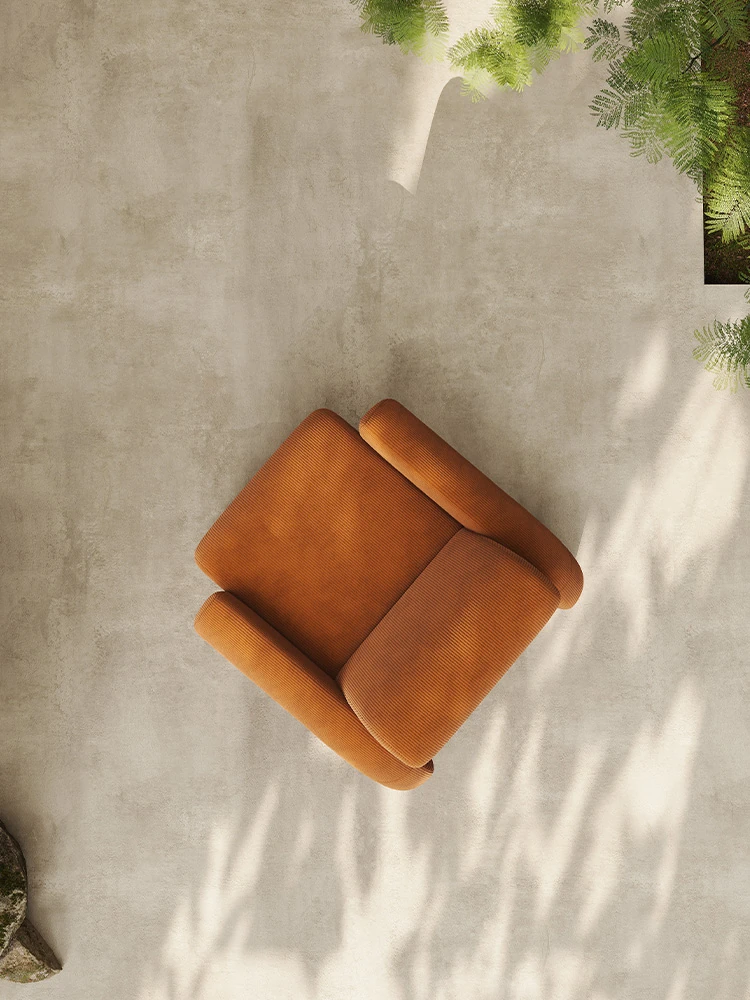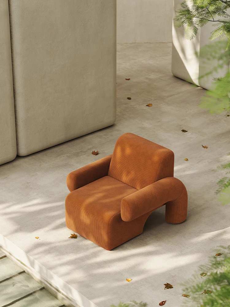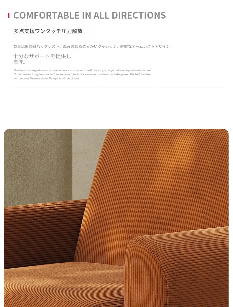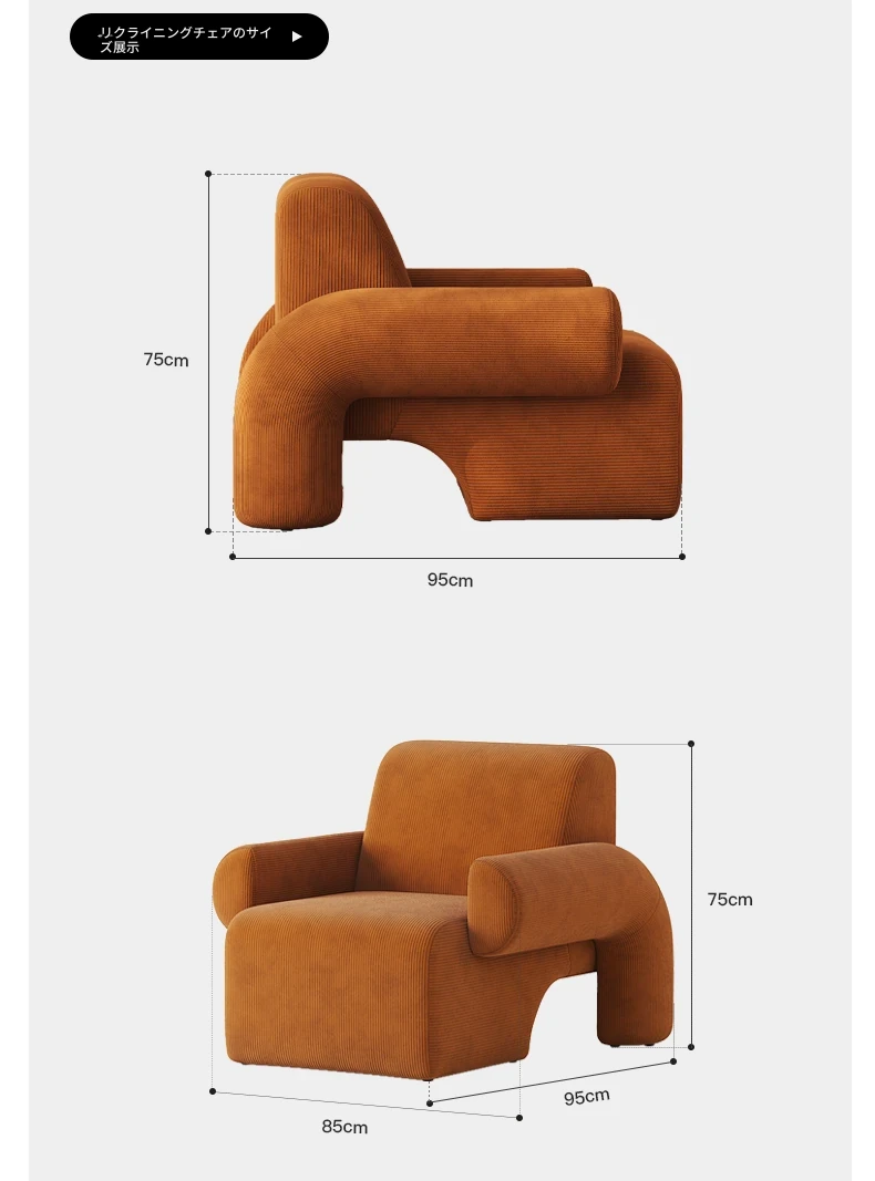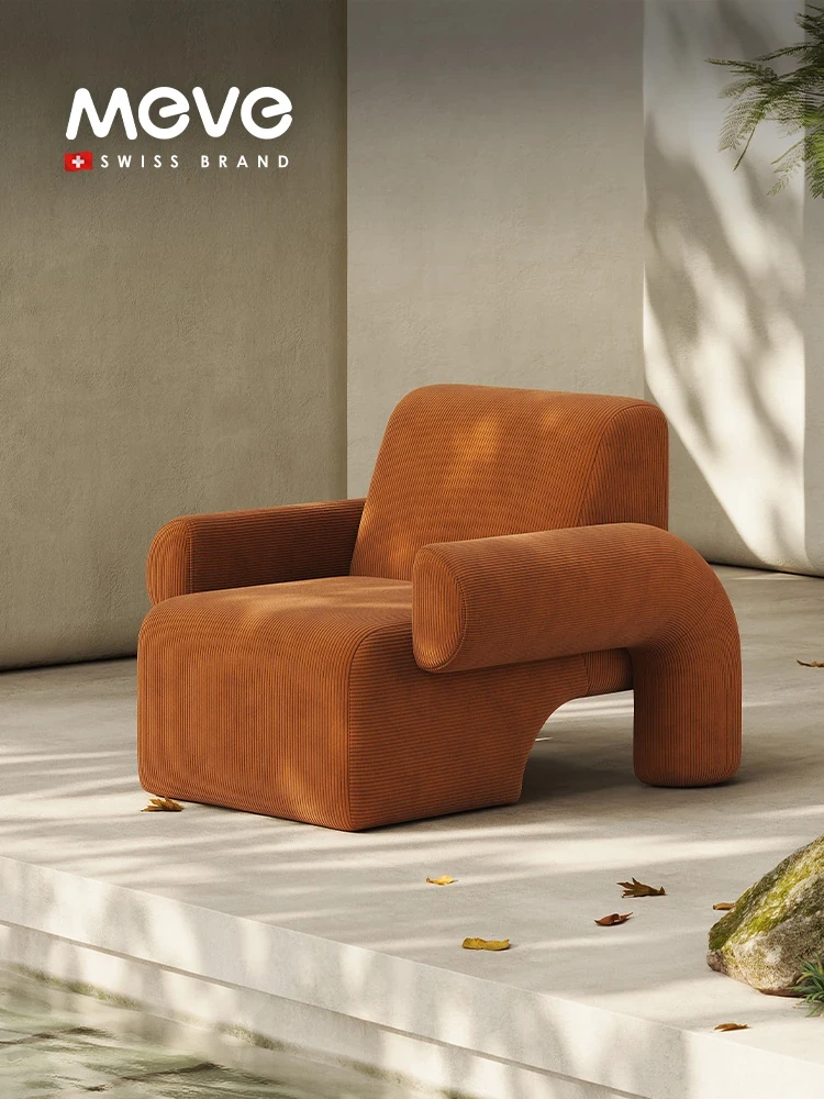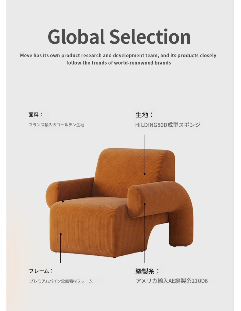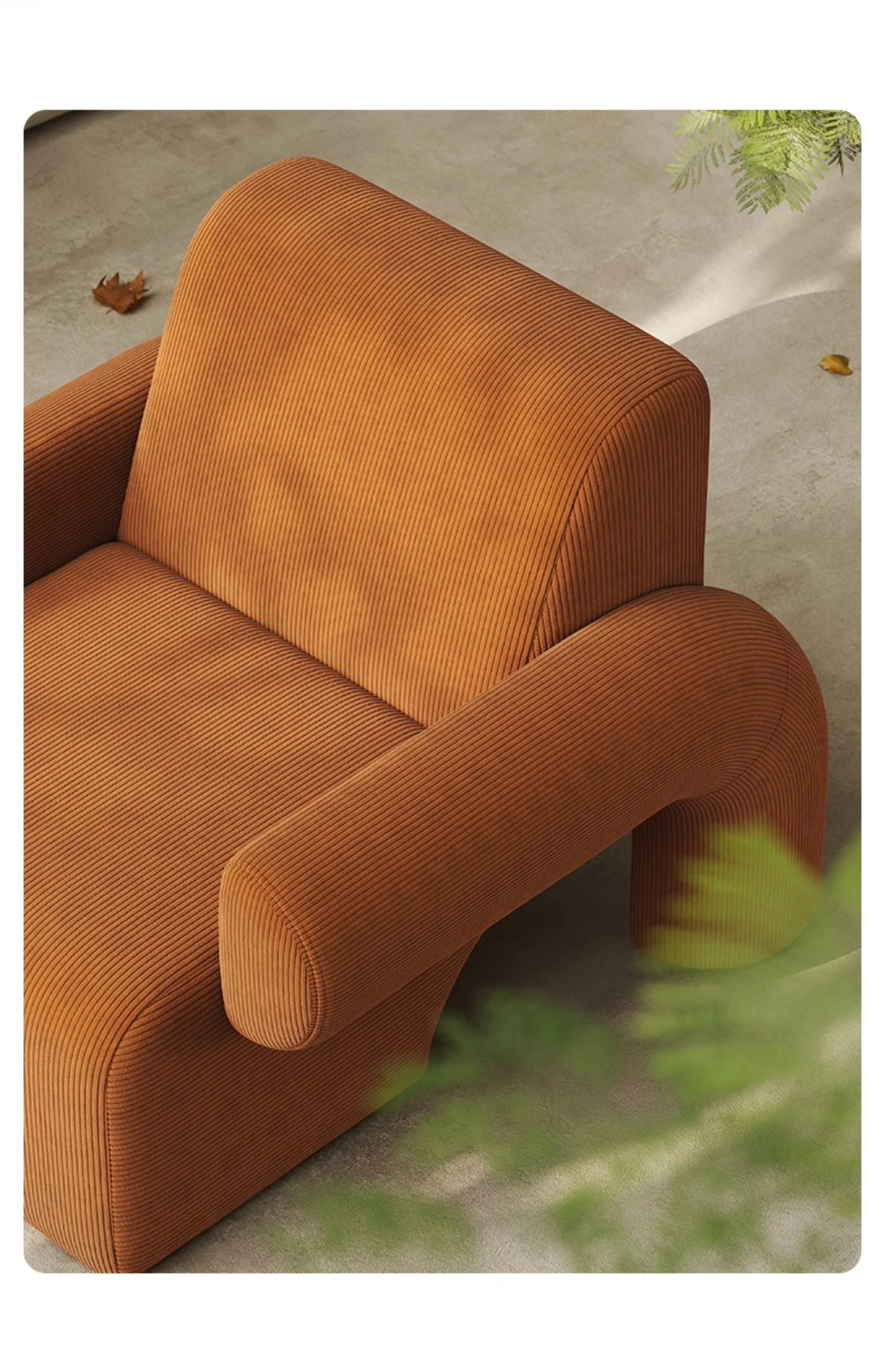 MEVEイタリアンデザイン一人用ソファチェア - ラグジュアリー感溢れるライトコーデュロイ素材、北欧風のリラックスチェア。おしゃれなリビングにぴったりの快適なくつろぎ空間を演出!