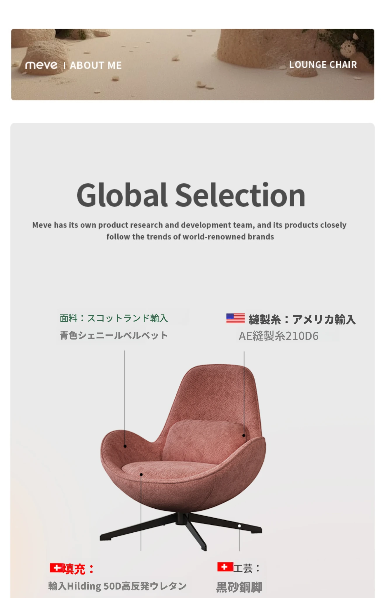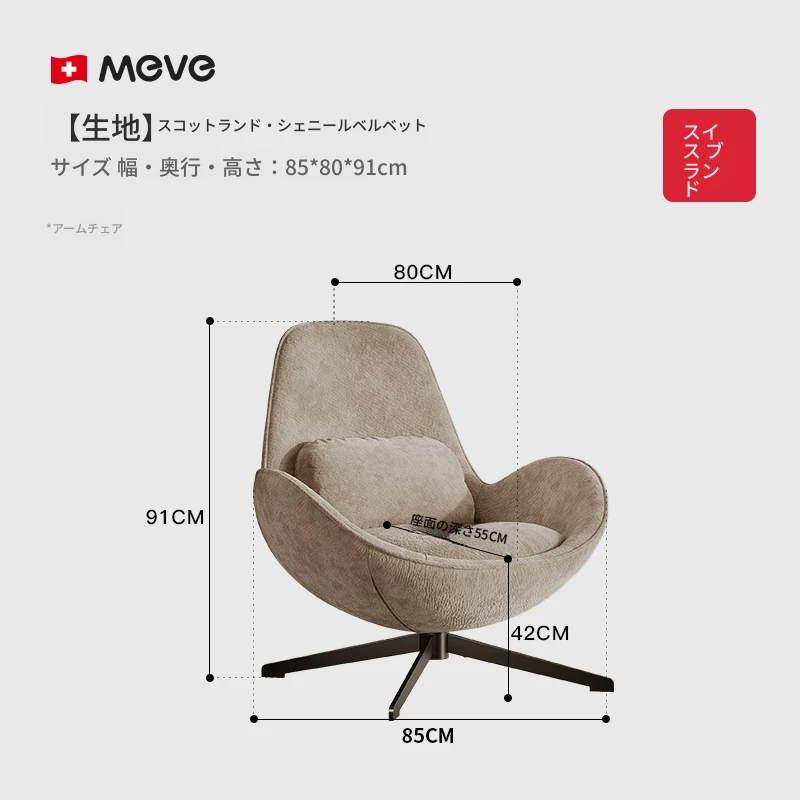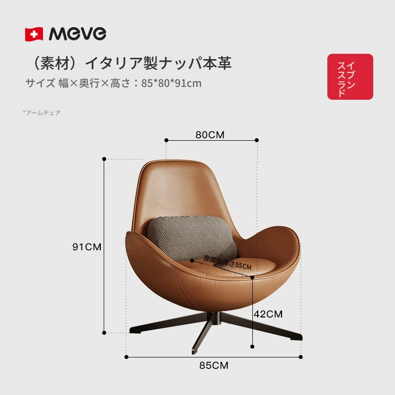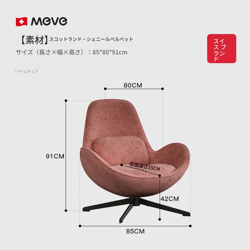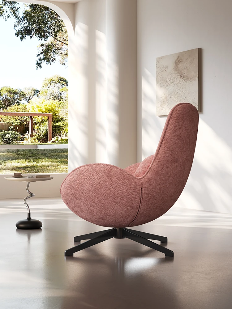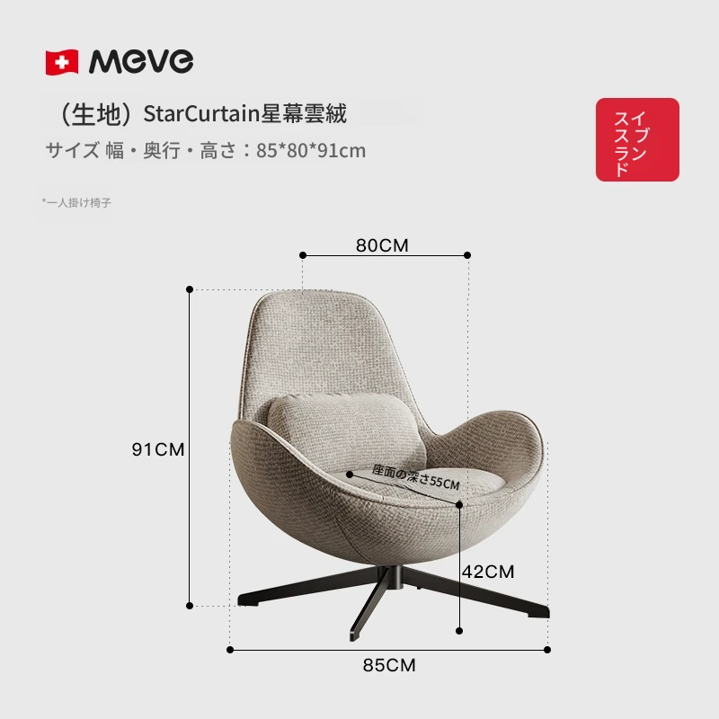 MEVE北欧スタイルのリラックスソファチェア - エレガントな卵型デザインで、居心地の良いリビングやバルコニーでの読書タイムを贅沢に演出!回転機能付きで、どんな角度でもリラックスを楽しめます。