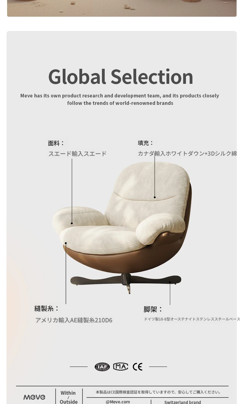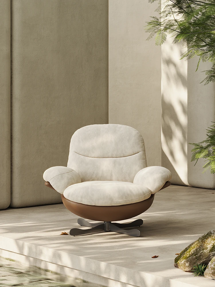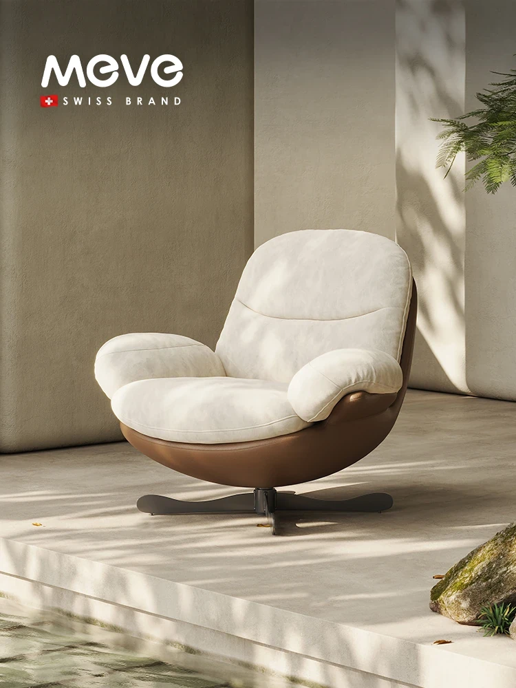 MEVE特許取得の新作!イタリアンミニマリズムデザインのリラックスソファチェア。家庭用バルコニー、くつろぎの回転椅子、リビングルームに最適な休息椅子。快適なひとときを提供します!