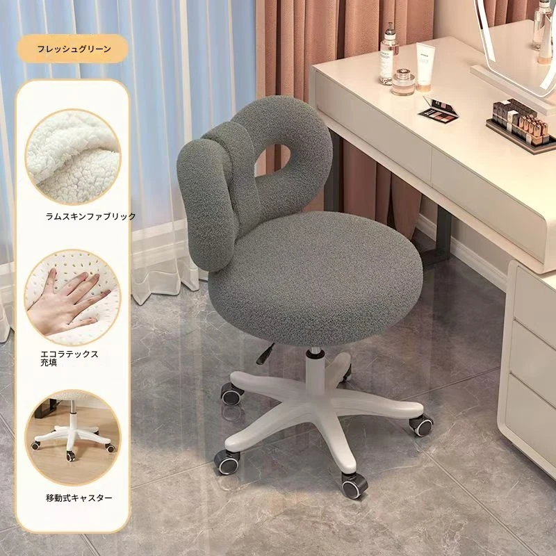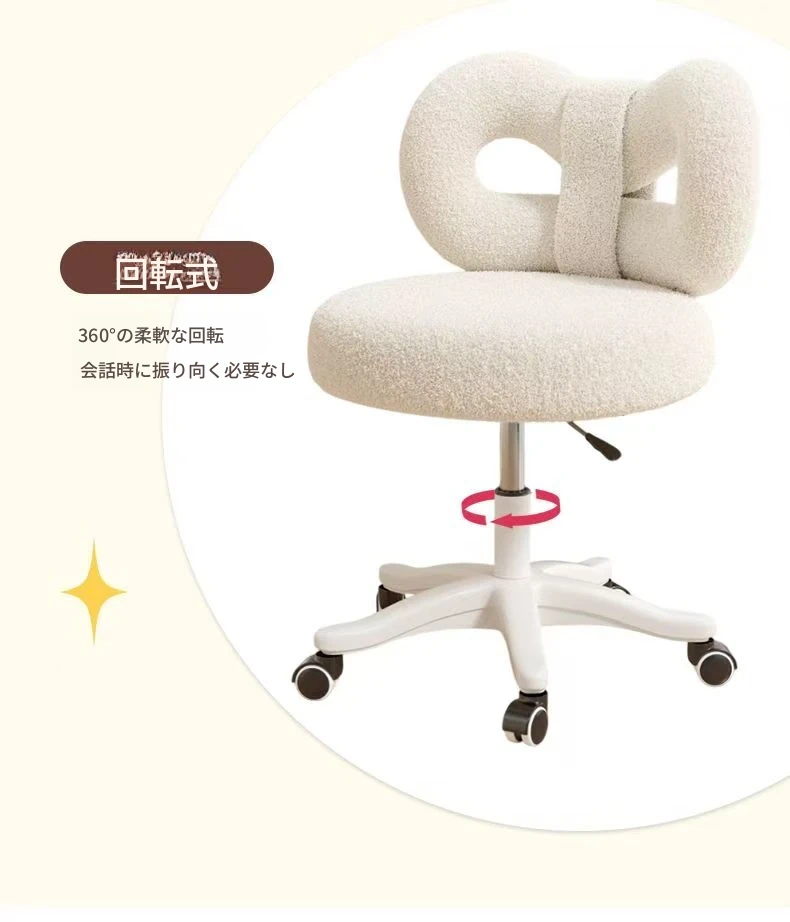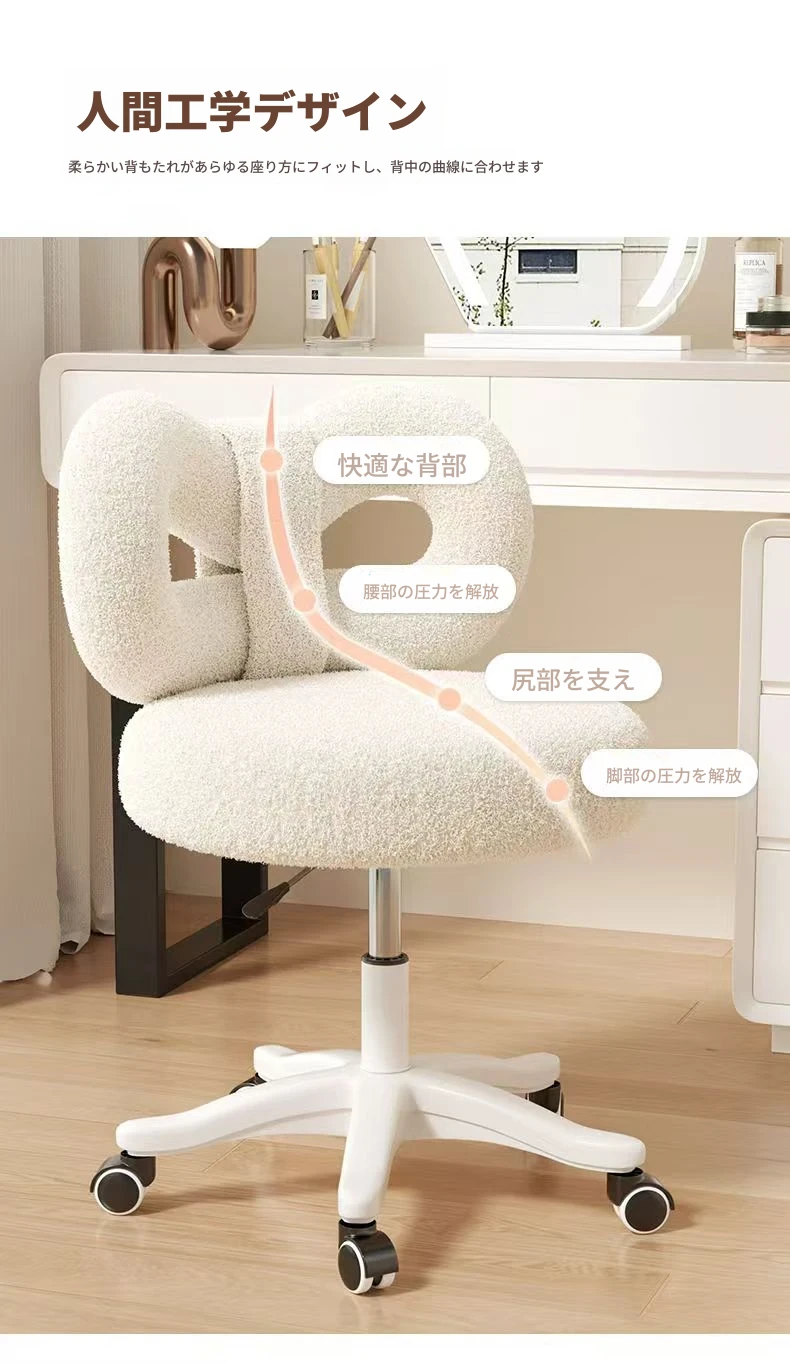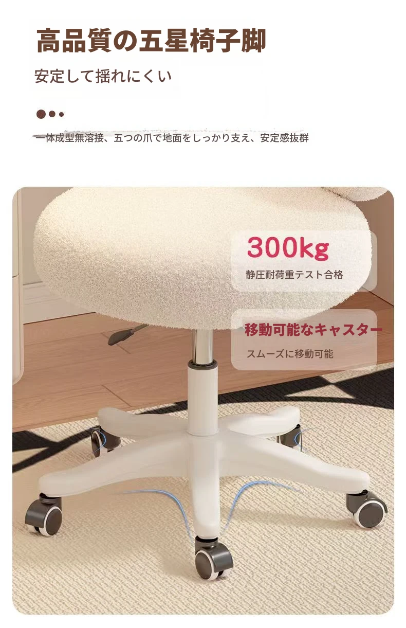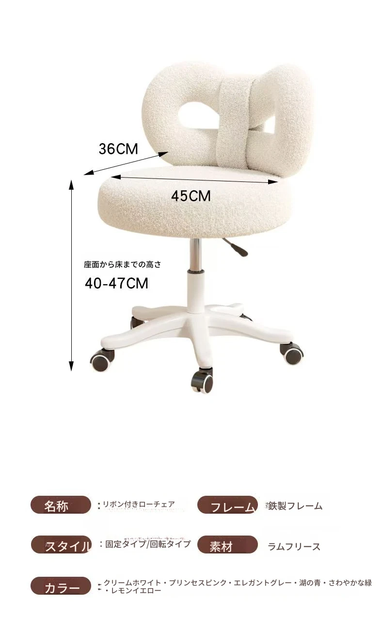 シンプルな昇降式メイクアップチェア - 回転するリボンデザインの美容室用椅子!オシャレな女の子にぴったり、ネイルやメイクにも最適なクリーミーカラーの椅子。快適さとデザインを両立したアイテムで、あなたの部屋を素敵に演出します!