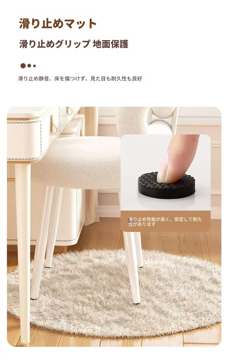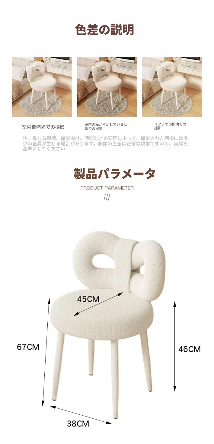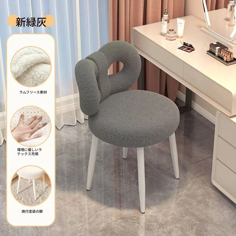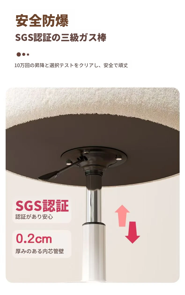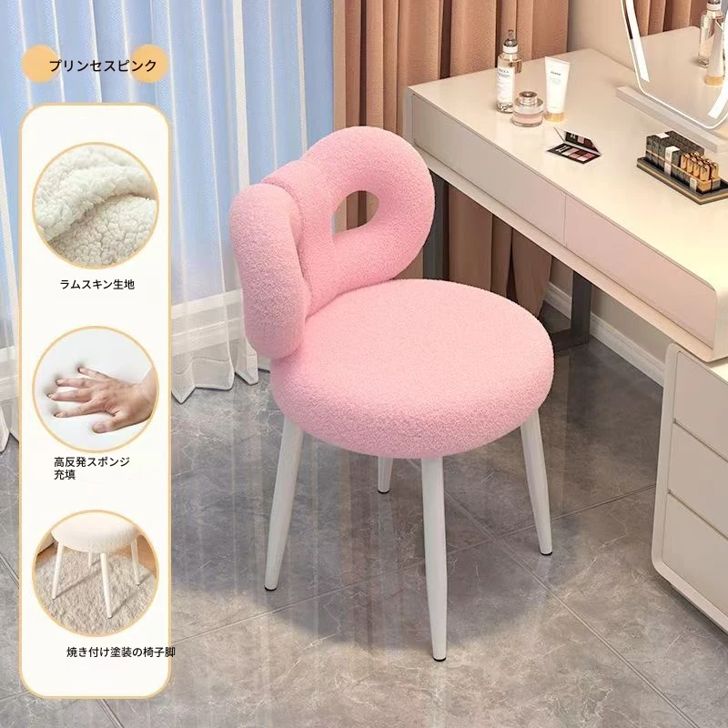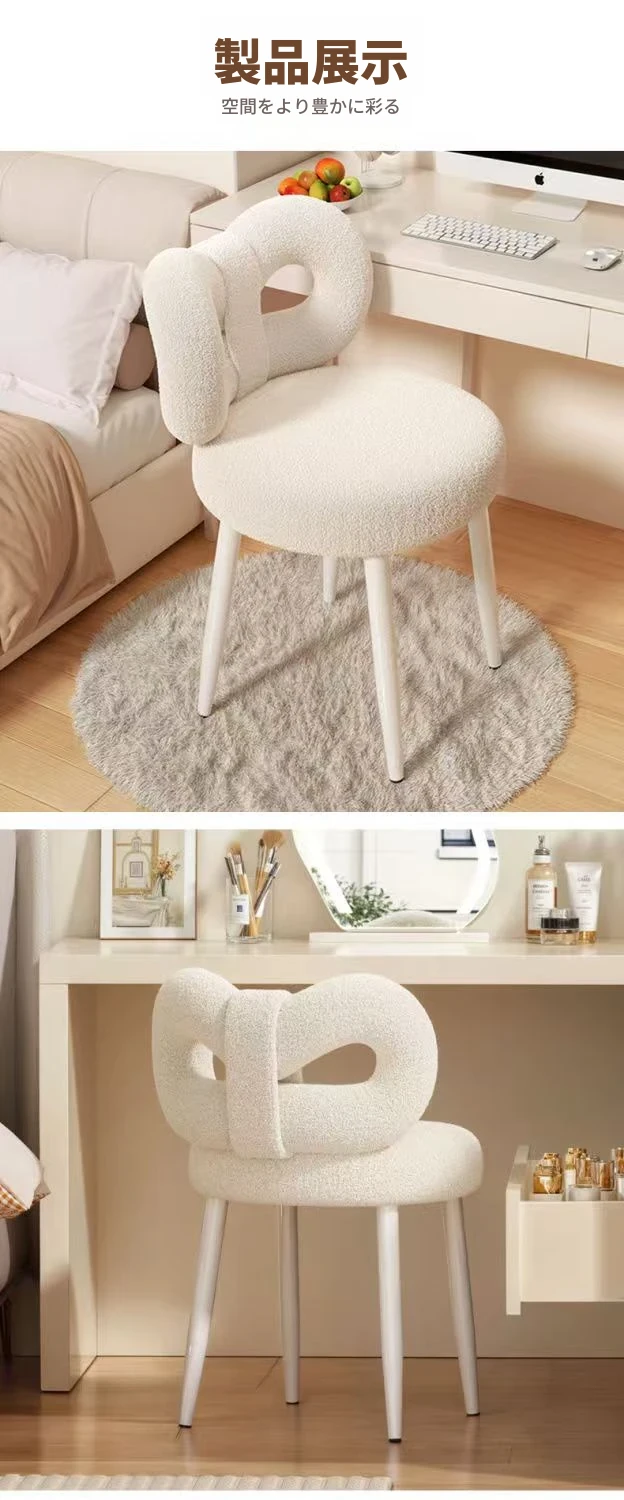 シンプルな昇降式メイクアップチェア - 回転するリボンデザインの美容室用椅子!オシャレな女の子にぴったり、ネイルやメイクにも最適なクリーミーカラーの椅子。快適さとデザインを両立したアイテムで、あなたの部屋を素敵に演出します!