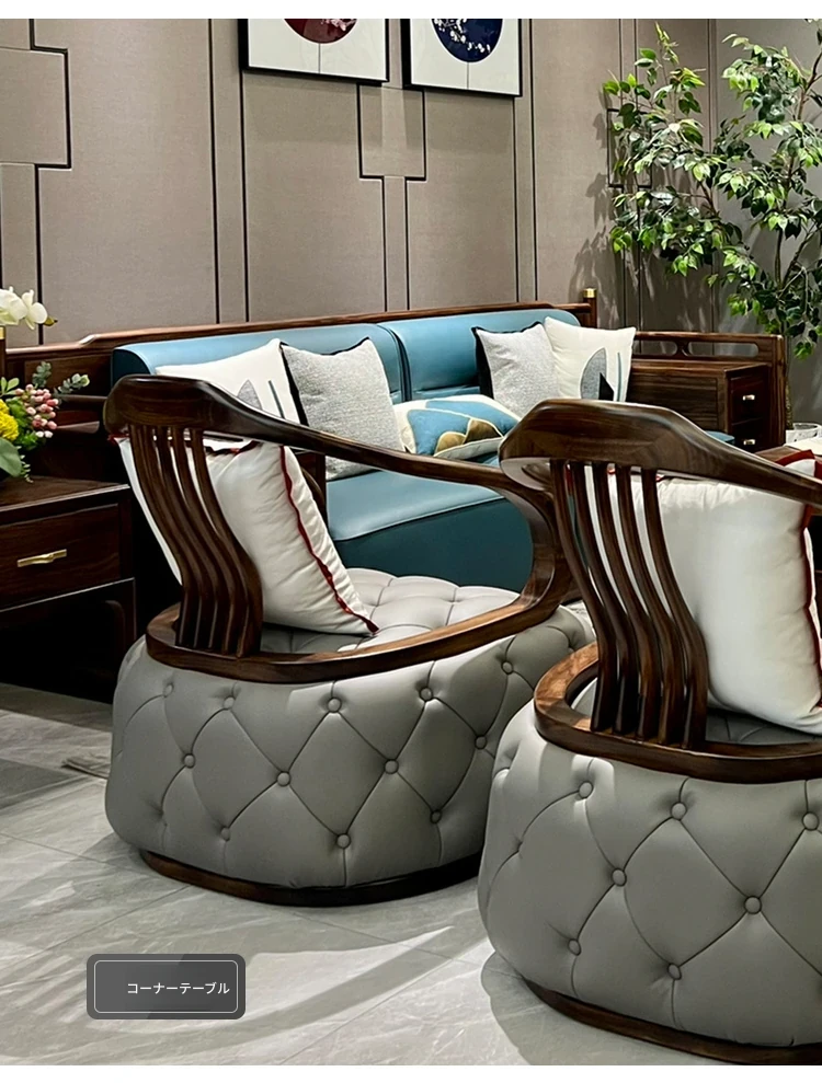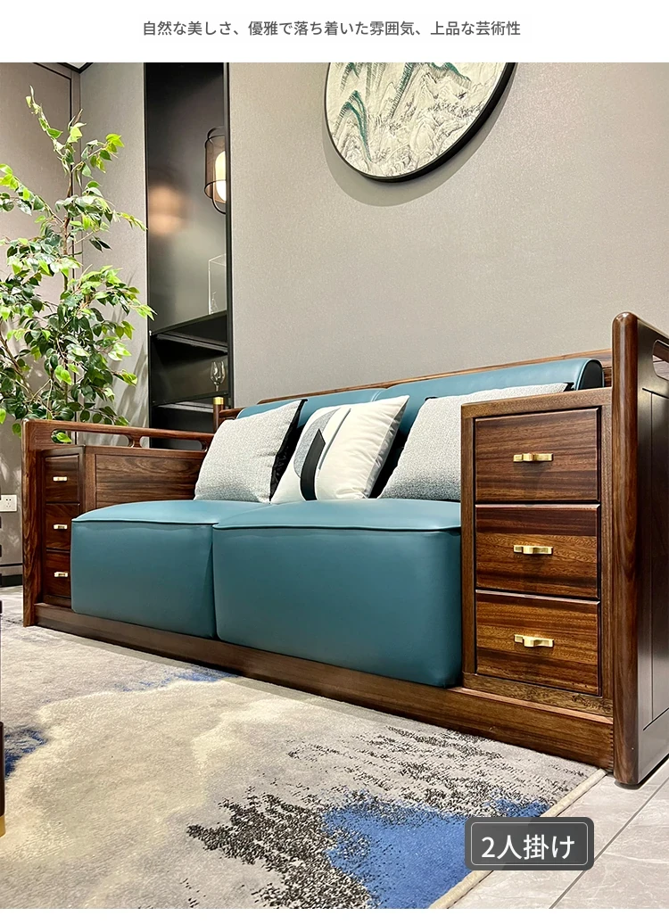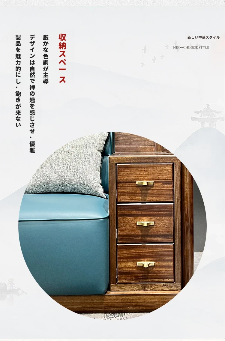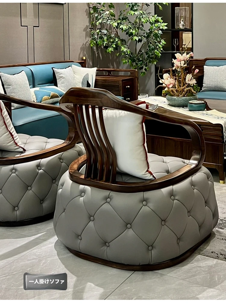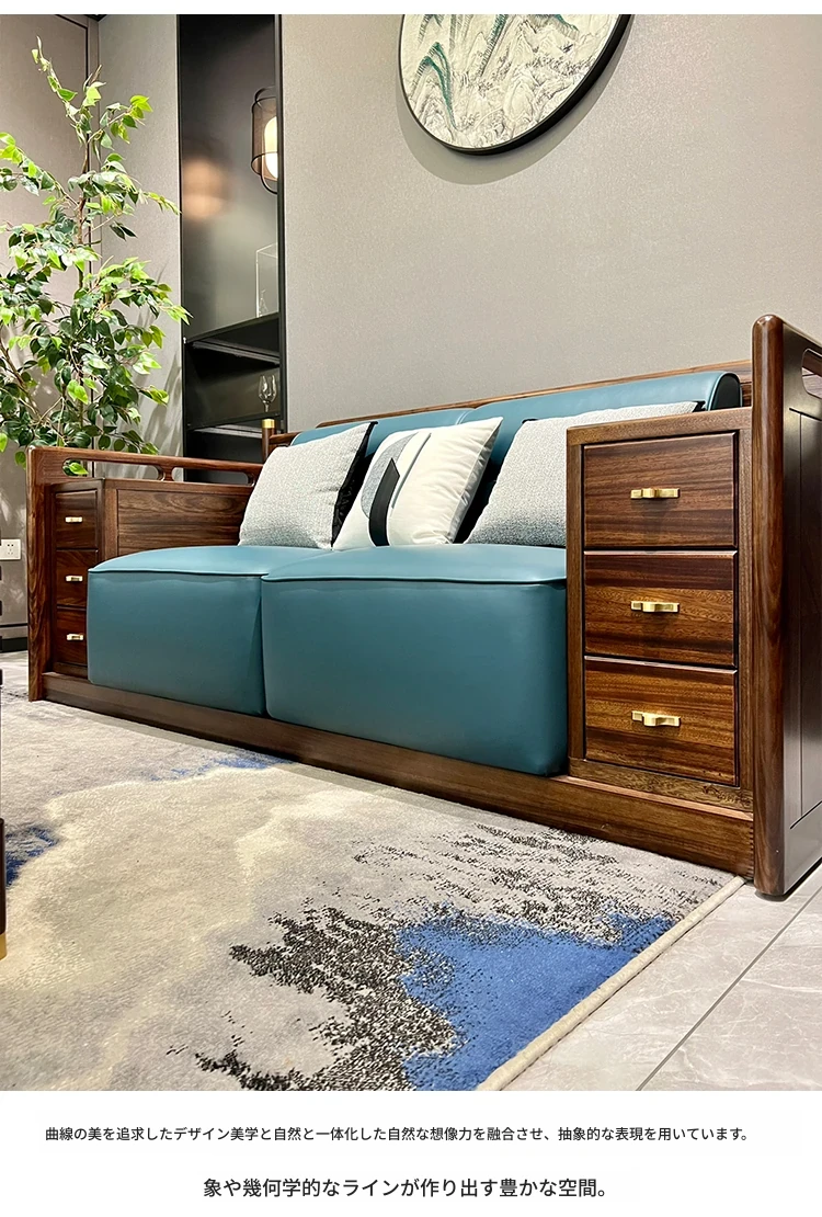 新中式ウッドソファ|高級感あふれるモダンデザイン|全実木・本革仕様|広々としたリビングに最適なシンプルで洗練された禅スタイルソファ|大邸宅向けの贅沢な居心地を提供します!