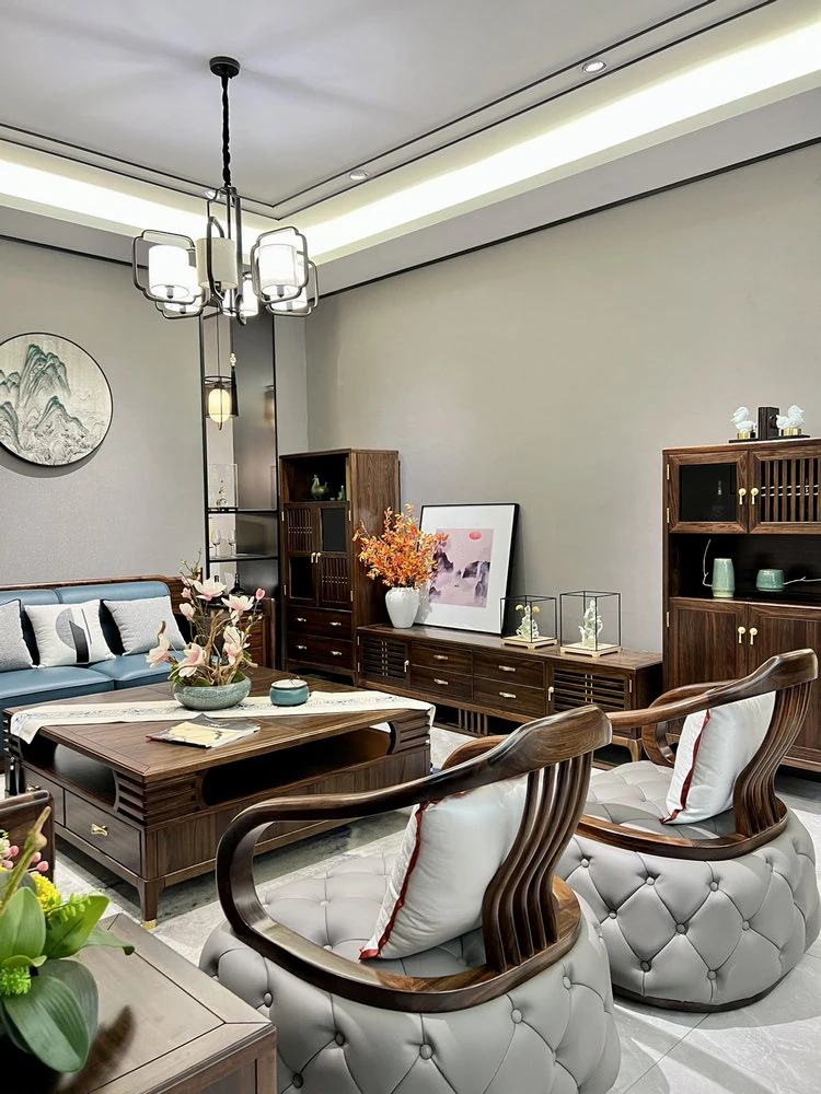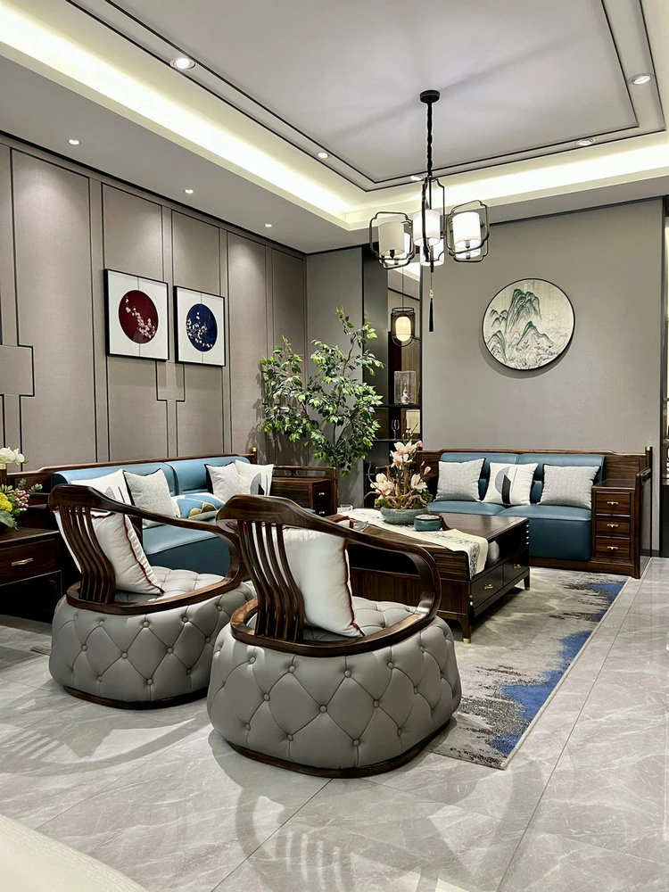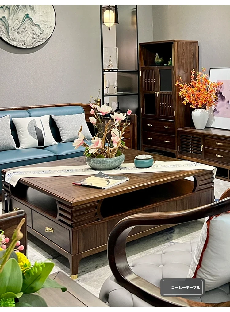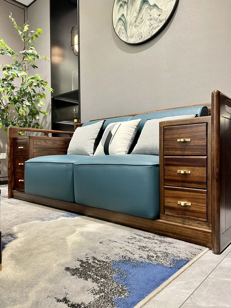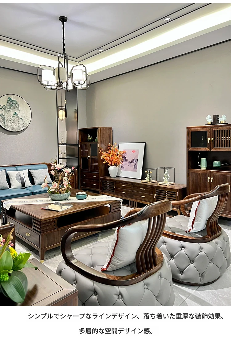 新中式ウッドソファ|高級感あふれるモダンデザイン|全実木・本革仕様|広々としたリビングに最適なシンプルで洗練された禅スタイルソファ|大邸宅向けの贅沢な居心地を提供します!