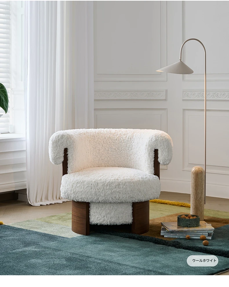 モダンクリームカラーの北欧風リラックスチェア - デザイナーズ一人用ソファ、リビングやバルコニーに最適!ヴィンテージスタイルの寝室や書斎、ドレッサー用にもぴったり!快適さとスタイルを両立させた一品です。