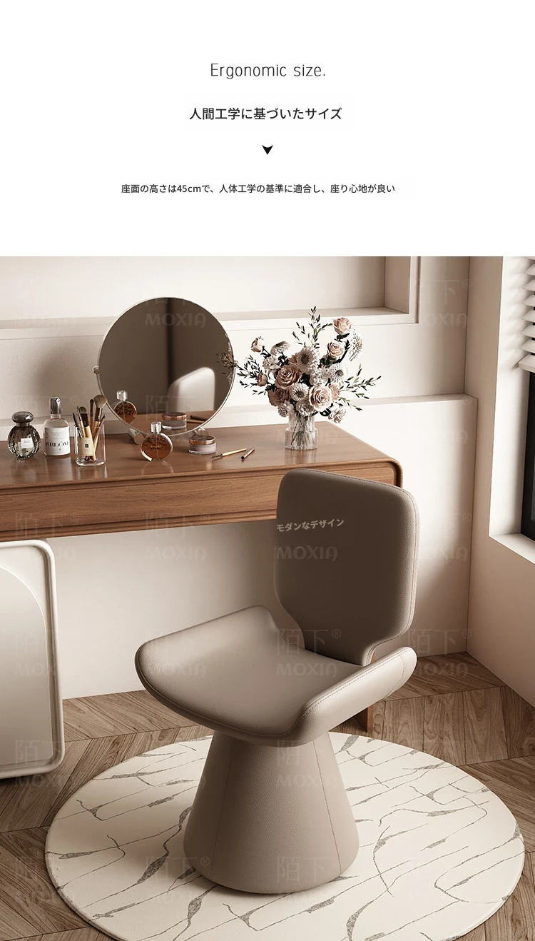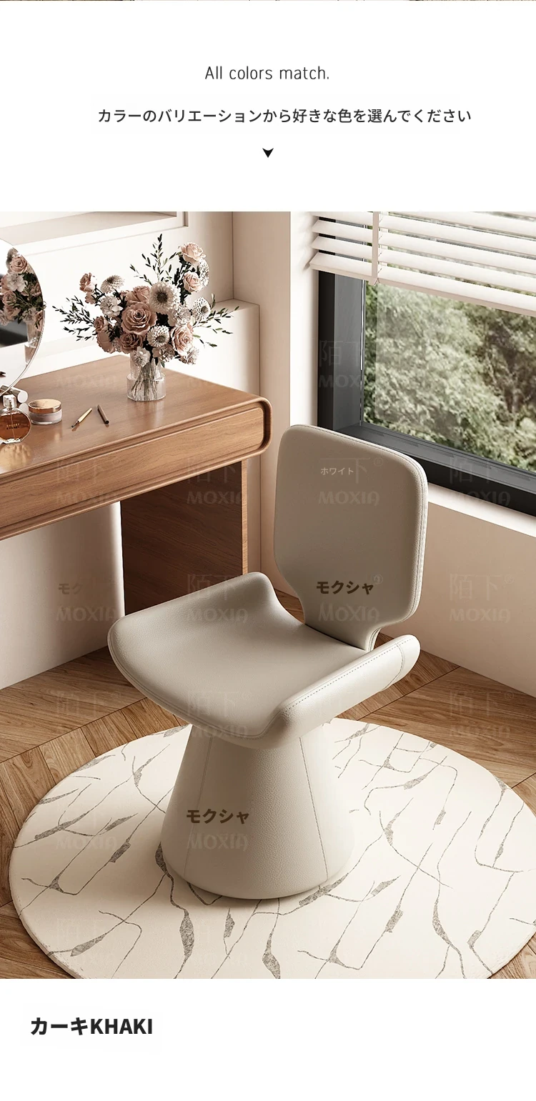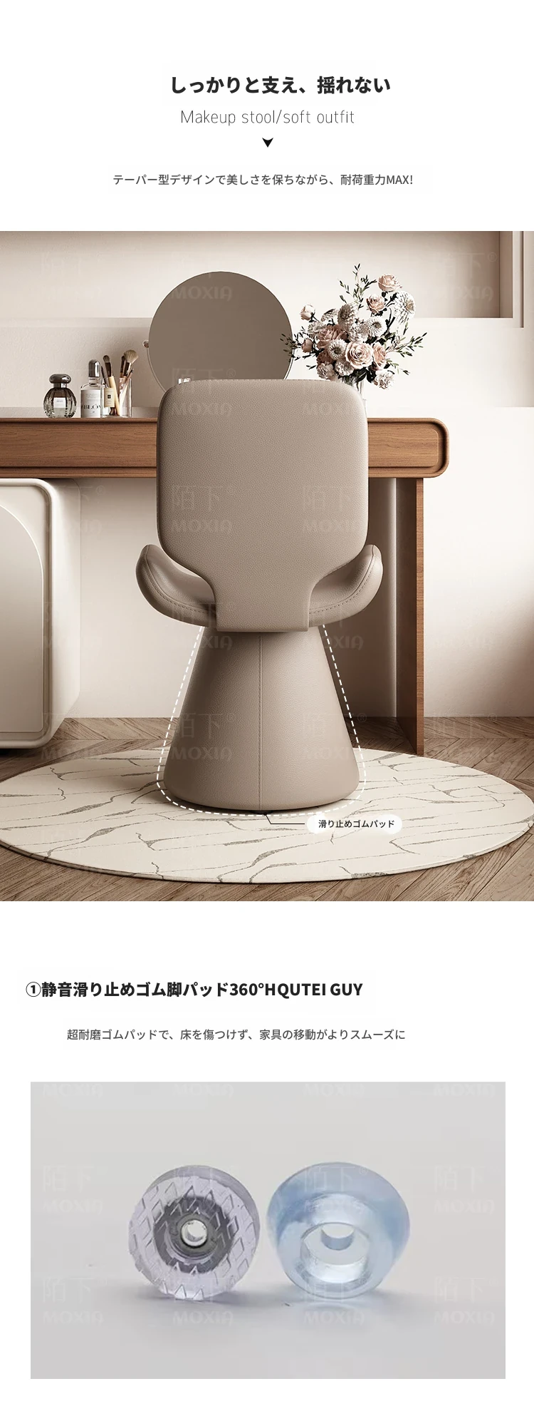 モクシア新作 高級感あふれる化粧椅子 おしゃれな回転式メイクスツール リビングにぴったりな高見えデザインの靴替えスツール