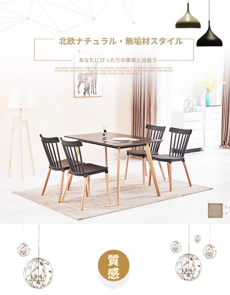 モダンミニマリスト6人用北欧スタイルの実木ダイニングテーブルセット - 小さいスペースにぴったりな4人用長方形テーブルで、家族や友人との食事をもっと楽しく!