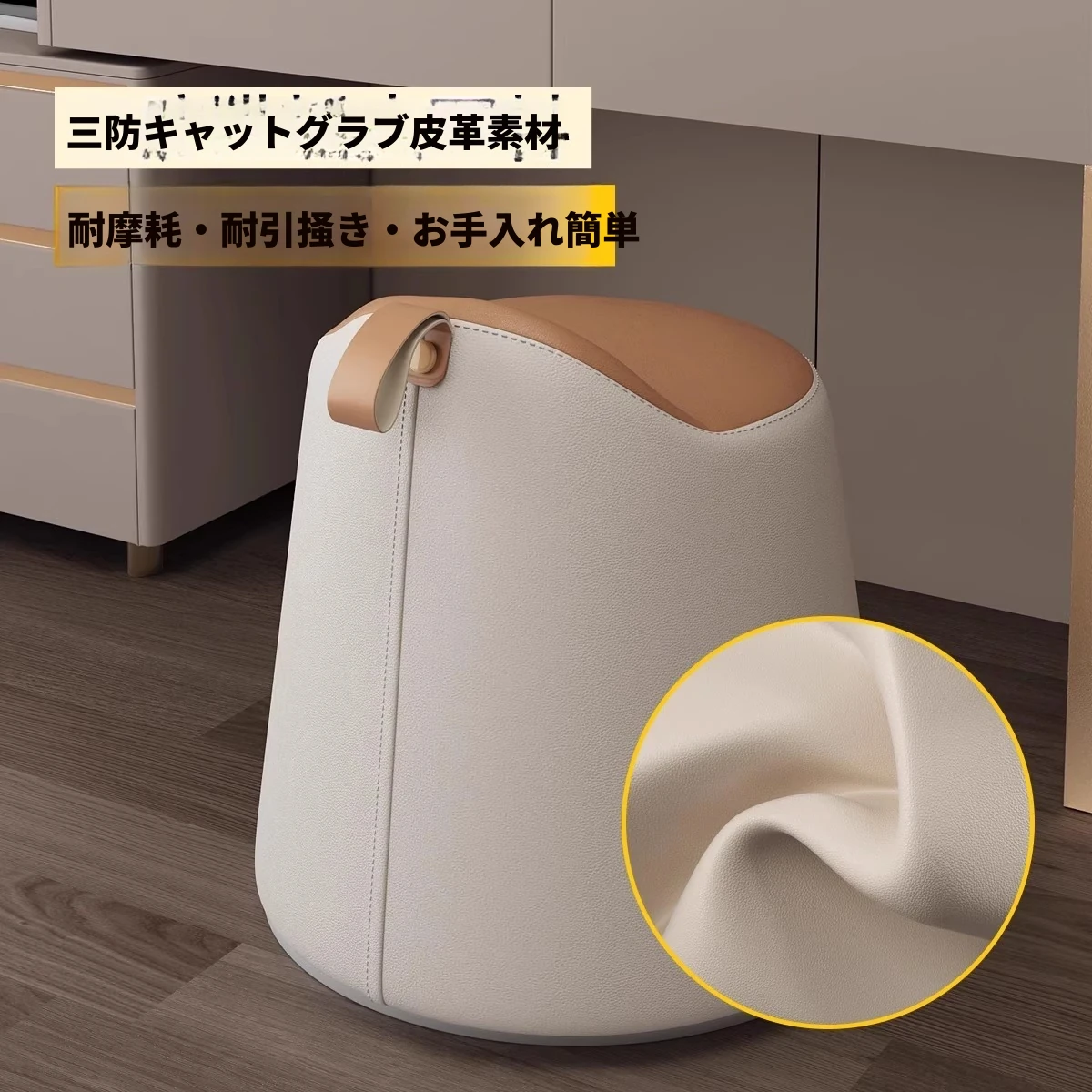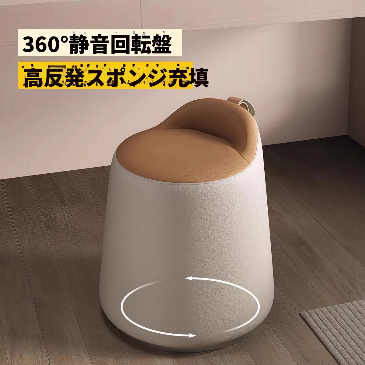 シンプルでモダンな軽奢華家用回転メイクスツール|女性の寝室にぴったりの化粧台用スツール|おしゃれな丸型デザインで、毎日のメイクアップを特別な時間に演出します!