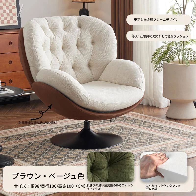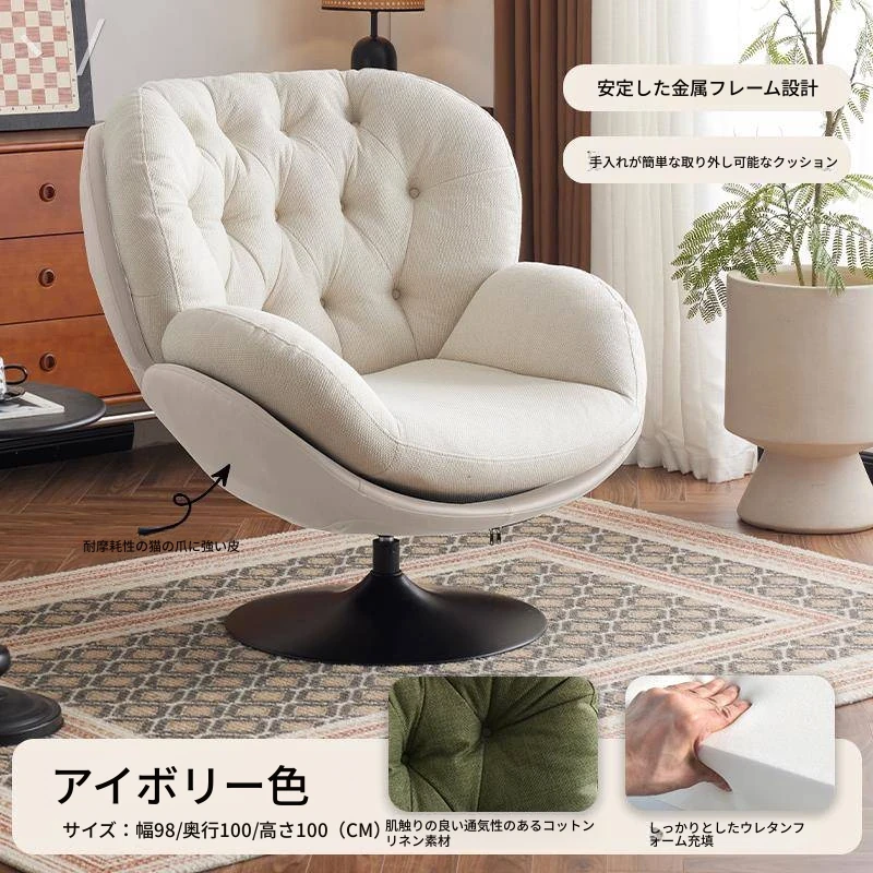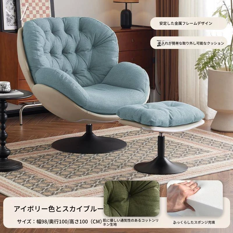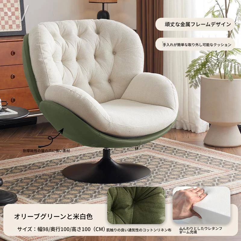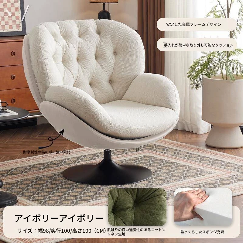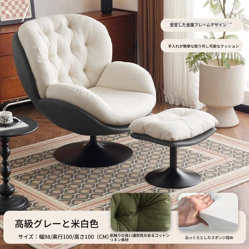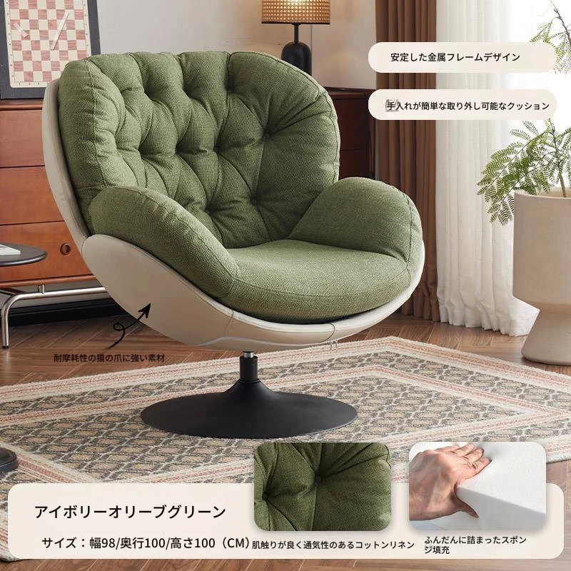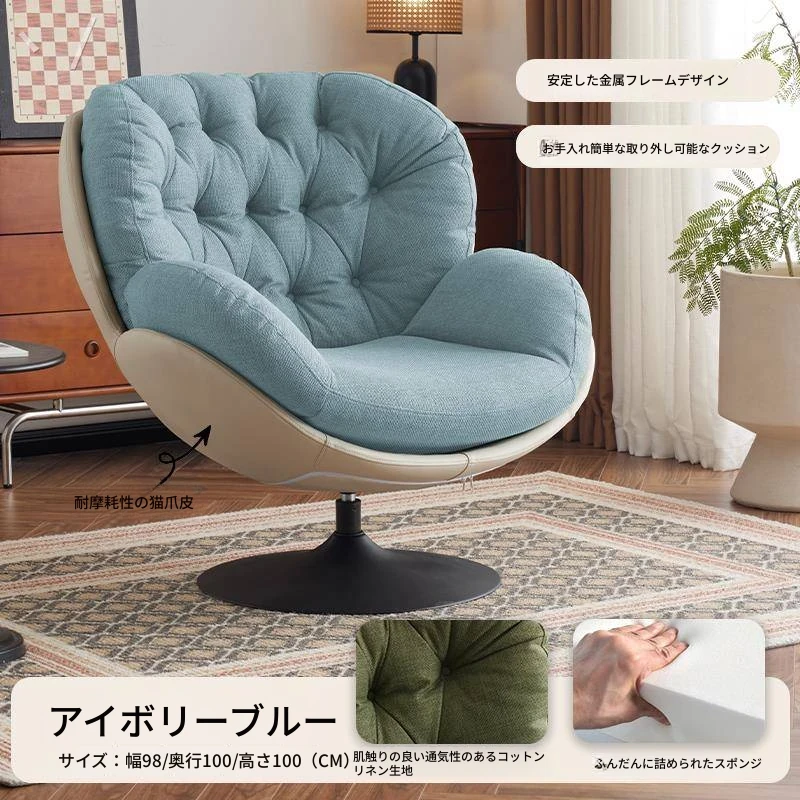 シンプルでモダンな一人用回転ソファチェア - 小型スペースに最適!バルコニーや書斎にぴったりのリラックスできる卵形デザイン、快適なラウンジチェアです。