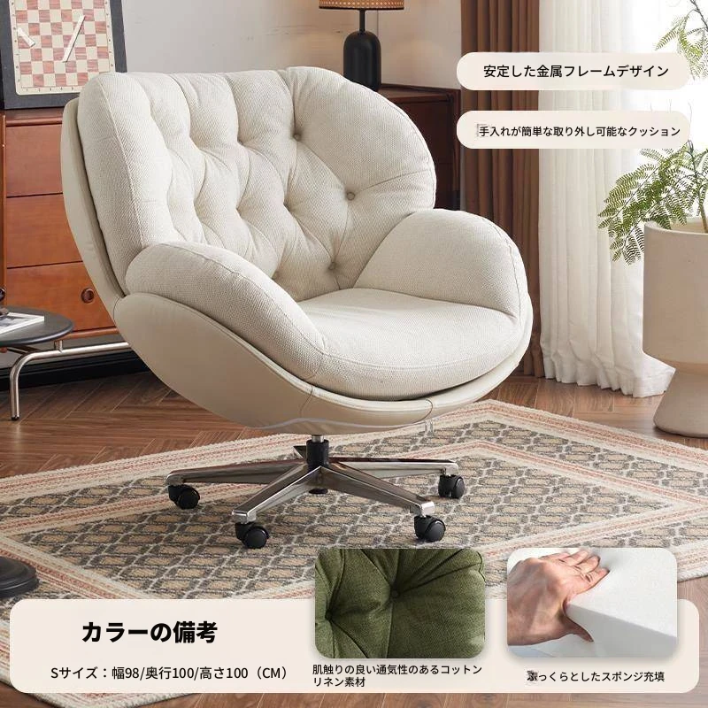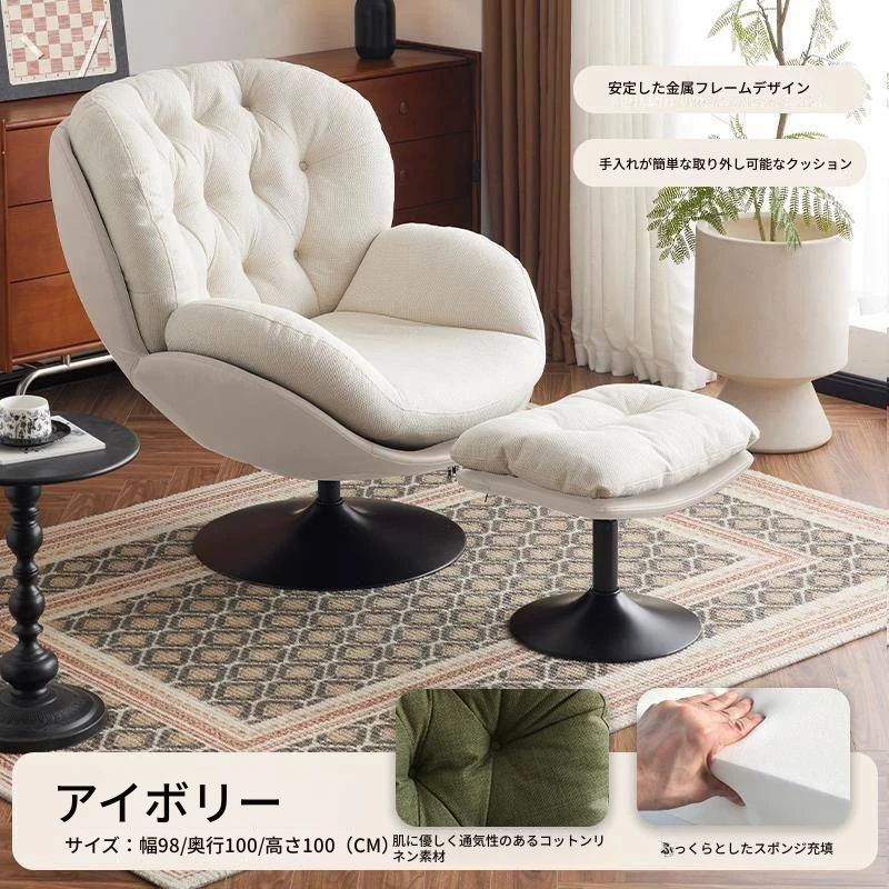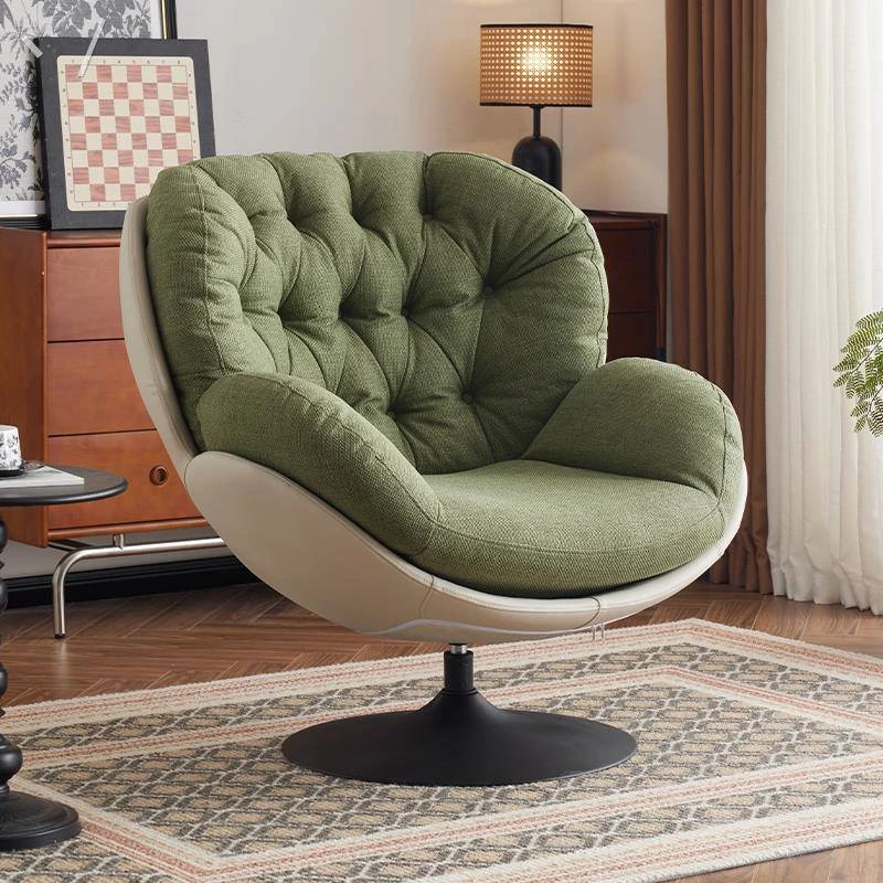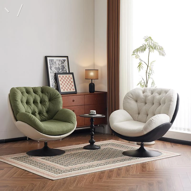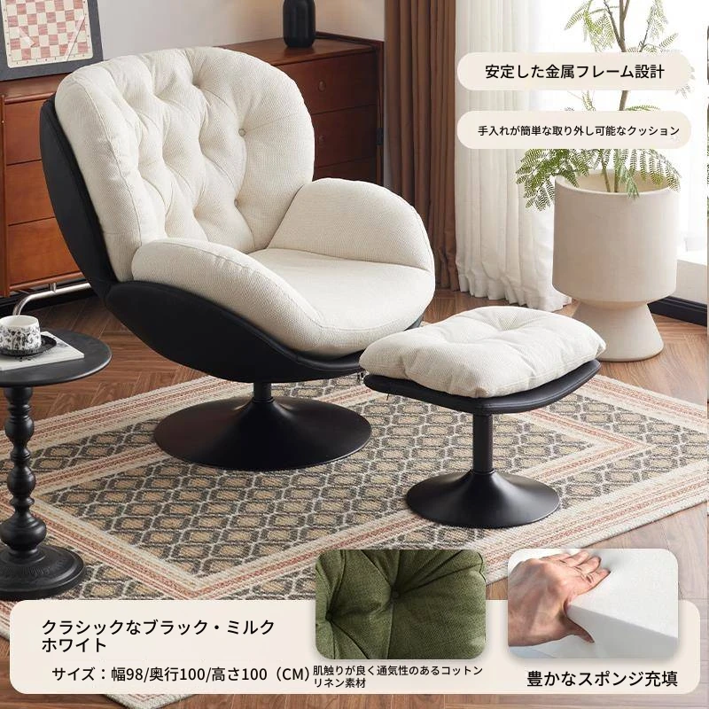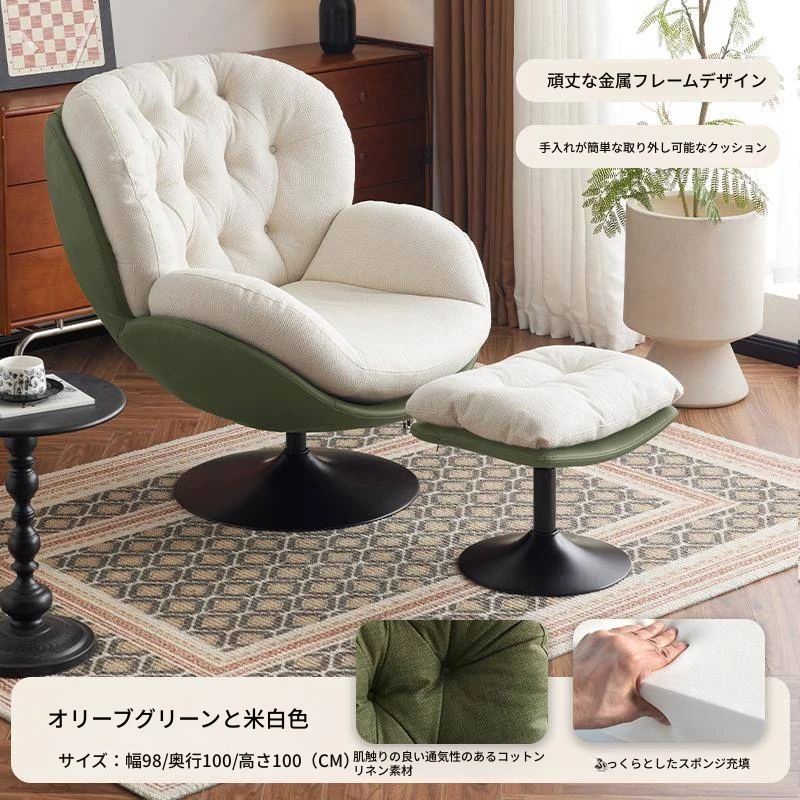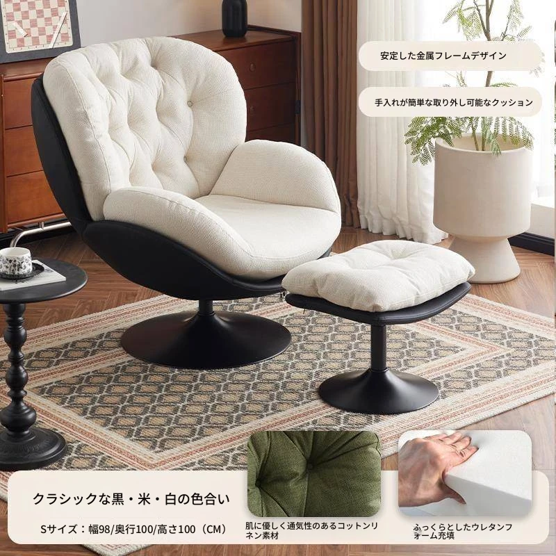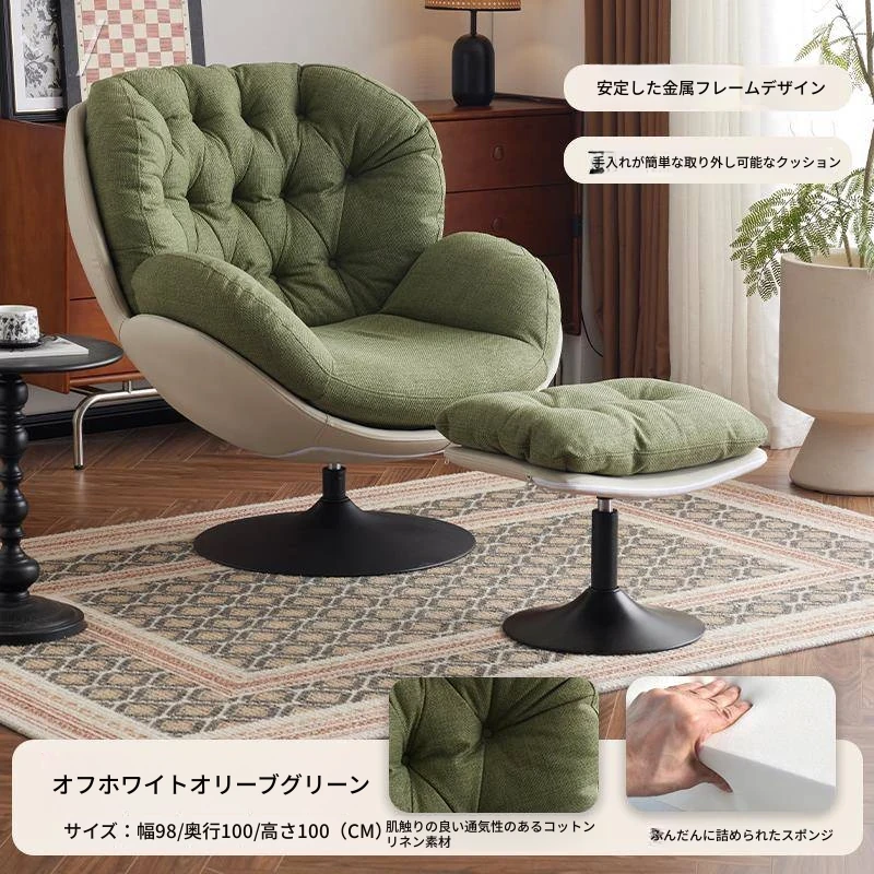 シンプルでモダンな一人用回転ソファチェア - 小型スペースに最適!バルコニーや書斎にぴったりのリラックスできる卵形デザイン、快適なラウンジチェアです。