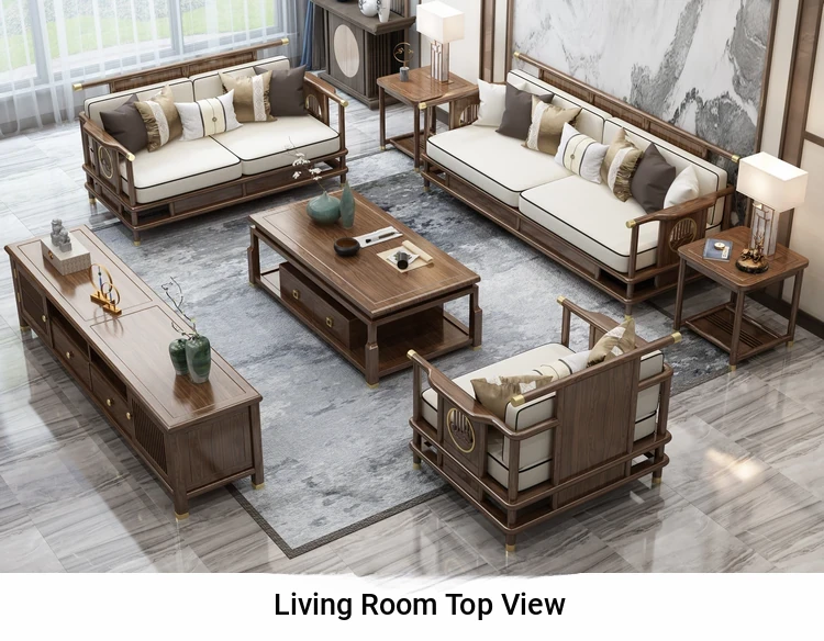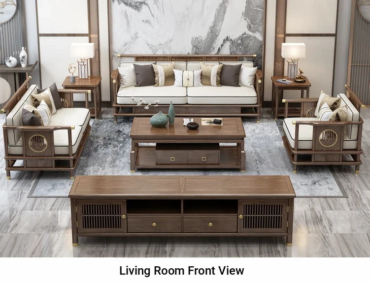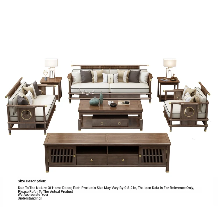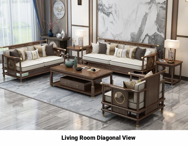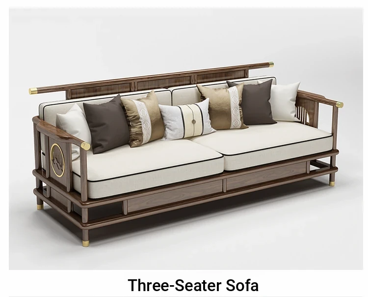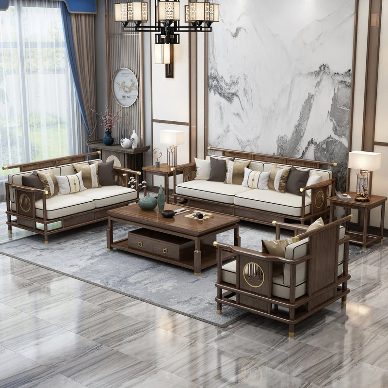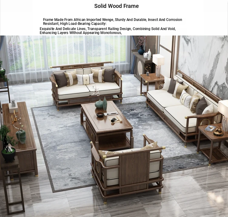 Modern Minimalist Zen-Style Sofa Set in Black Gold Wood - Luxurious Solid Wood and Fabric Furniture for Villas and Home Decor, Available for Immediate Purchase