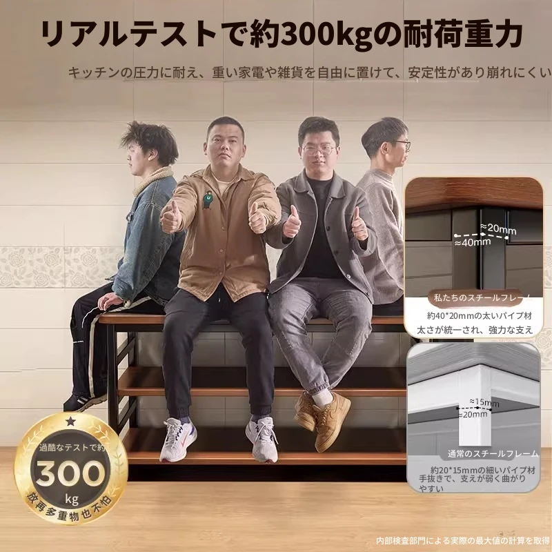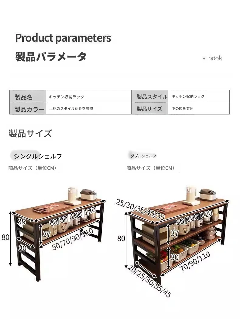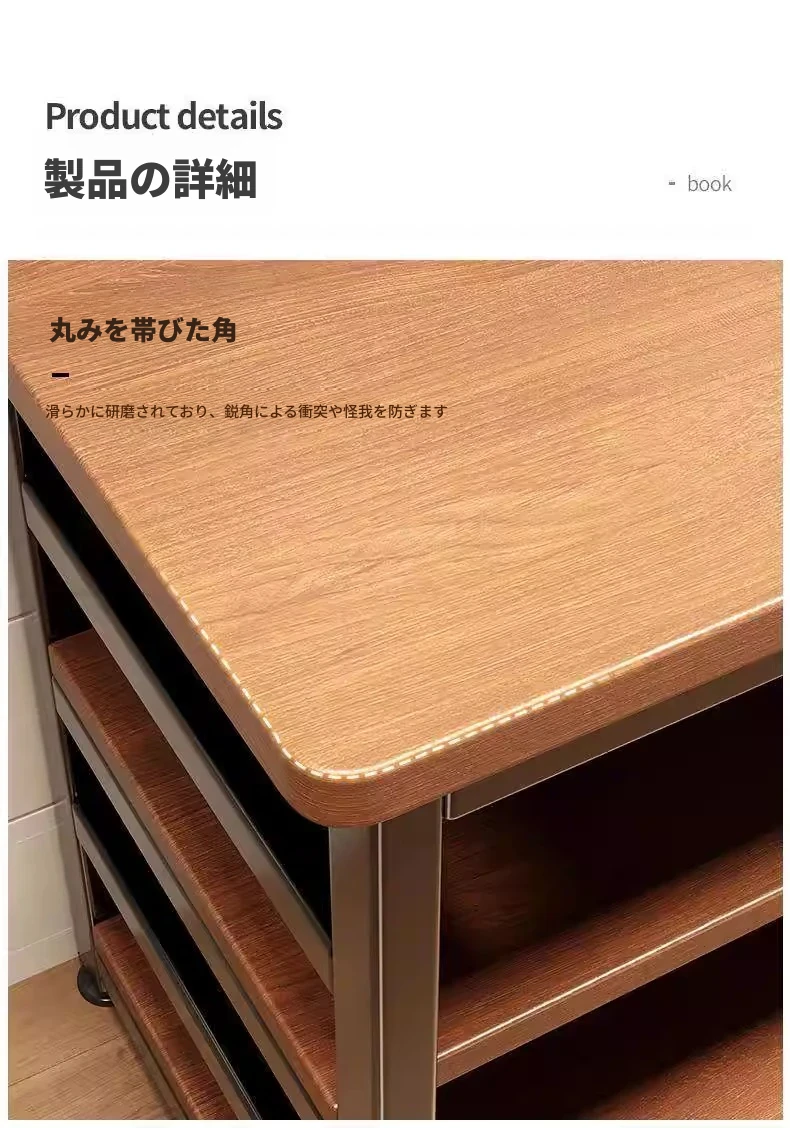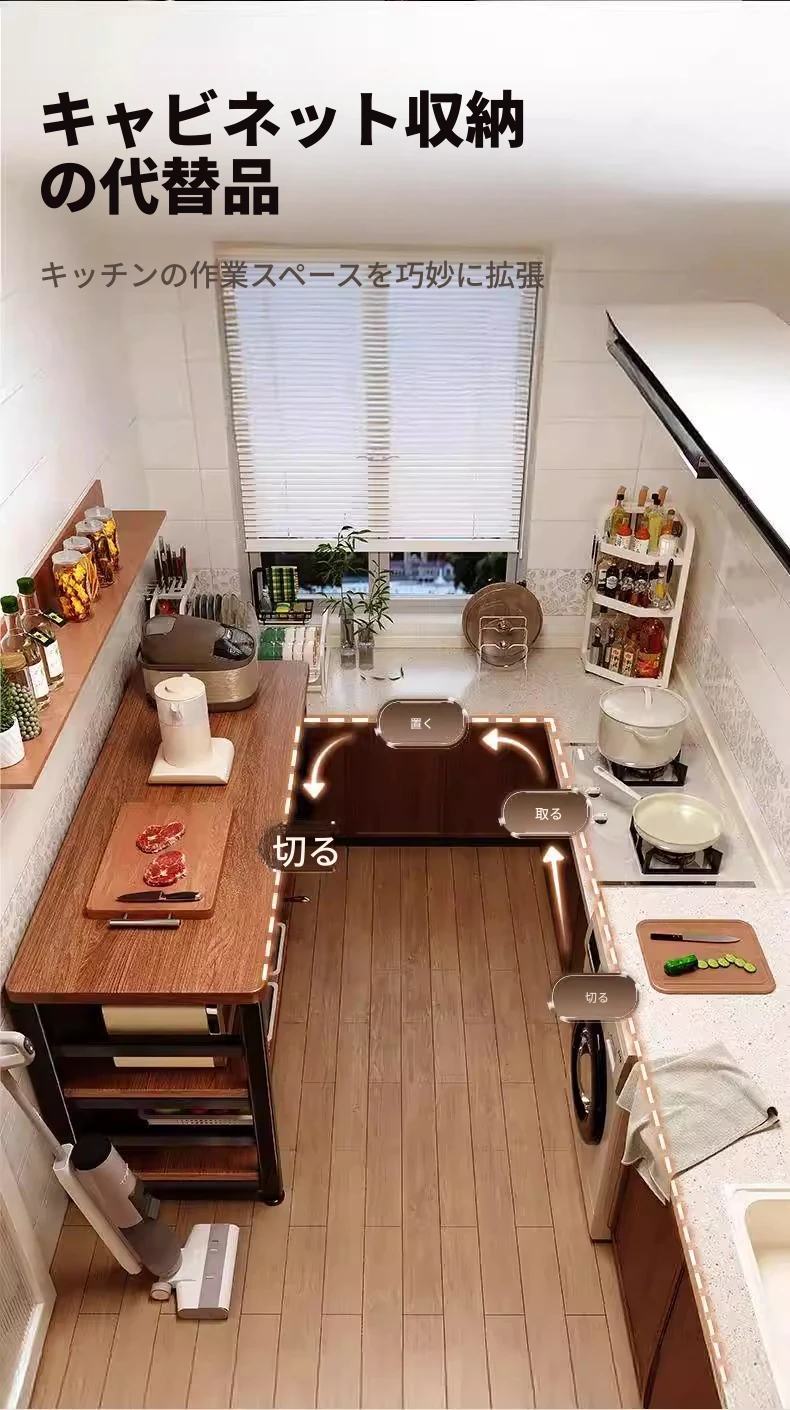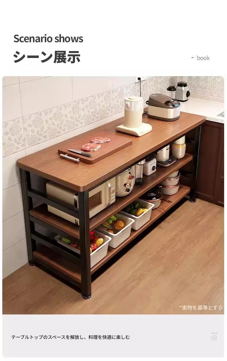 多機能キッチンラック!野菜カゴ&カッティングボード、電子レンジや鍋の収納もできる便利なサイドキャビネット。スペースを有効活用し、料理をもっと楽しく!