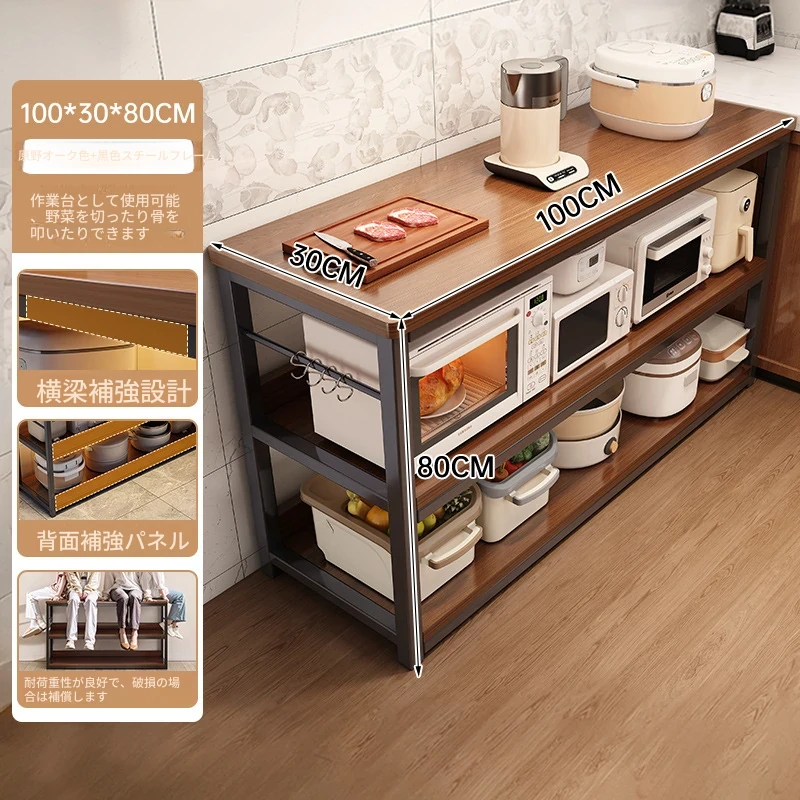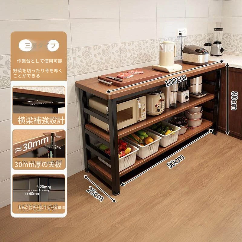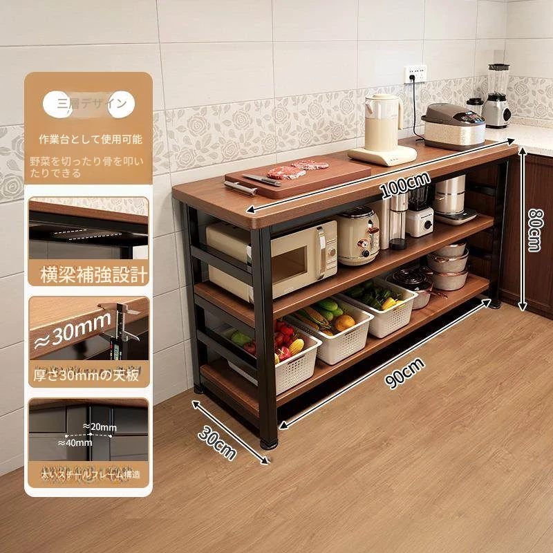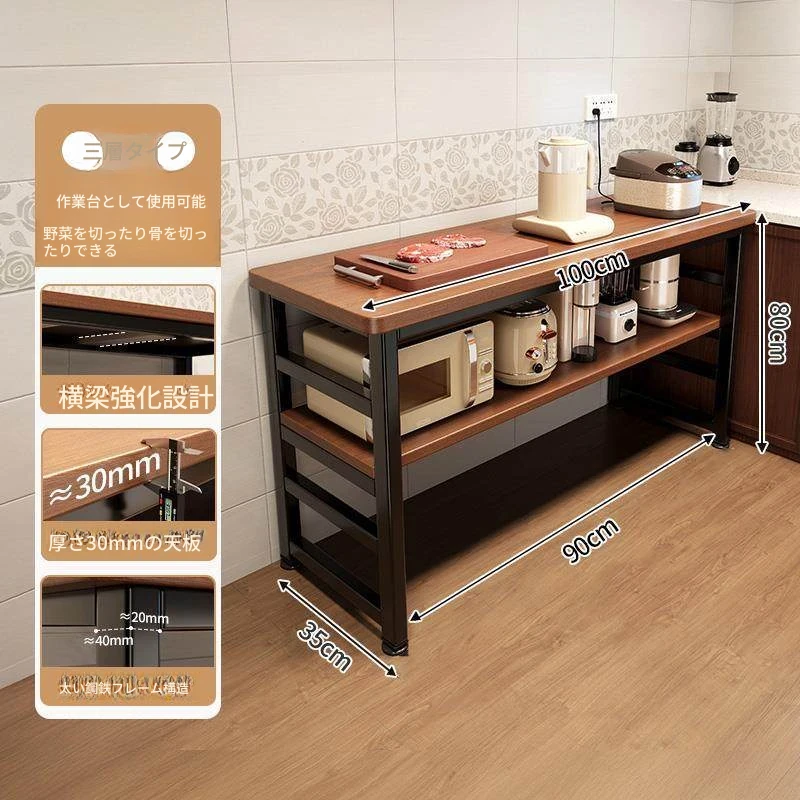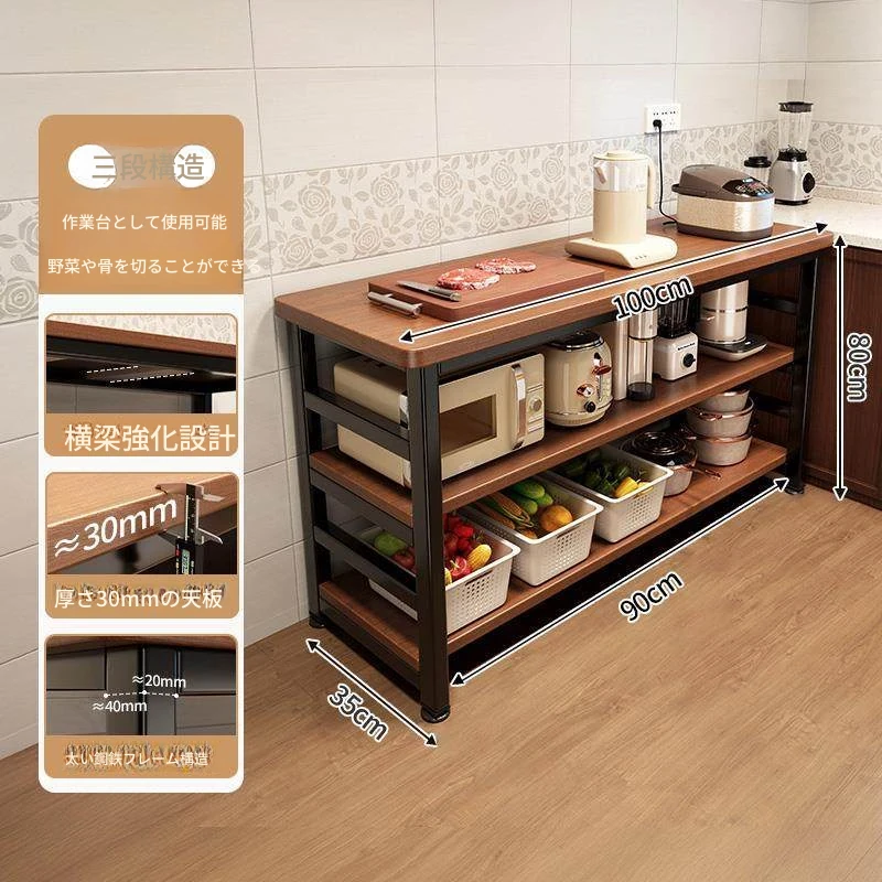 (アップグレード版菜籠)【厚さ30mmの天板】三段 長さ100 幅35 高さ80
