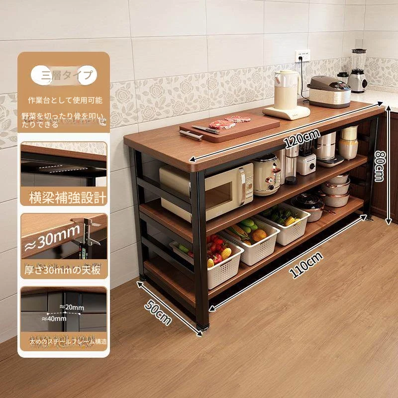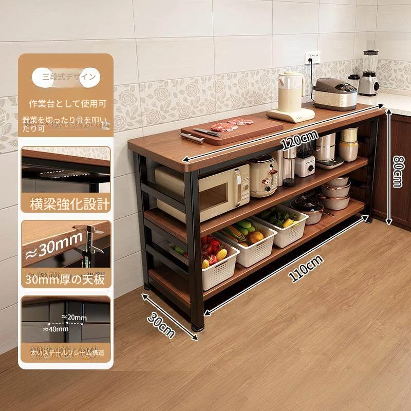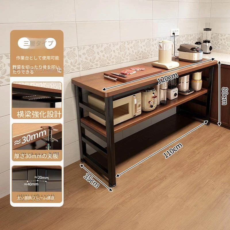 (アップグレード版菜籠)【厚さ30mmの天板】三段 長さ120 幅35 高さ80