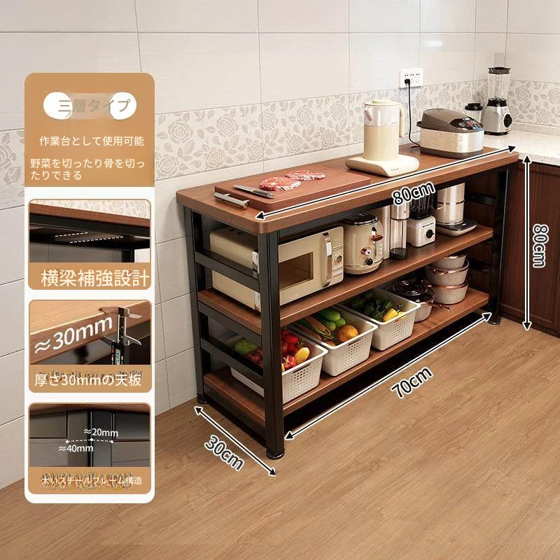 (アップグレード版菜籠)【厚さ30mmの天板】三段 長さ80 幅35 高さ80