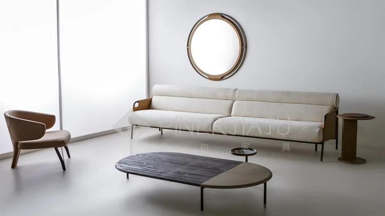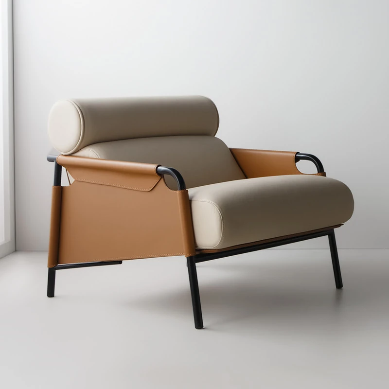 北欧スタイルの金属製ホーム用シングル&ダブルソファ - 新デザインのシンプルでモダンなリビング用サドルレザー&ファブリックソファ!快適な座り心地とスタイリッシュな外観で、あなたのリビングを格上げします。