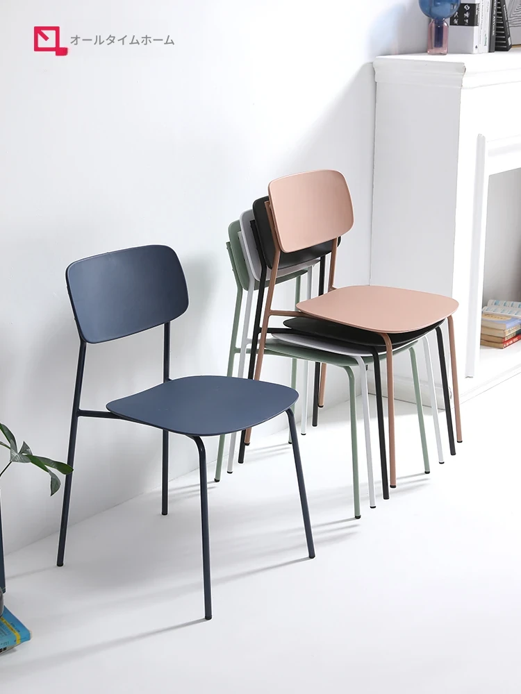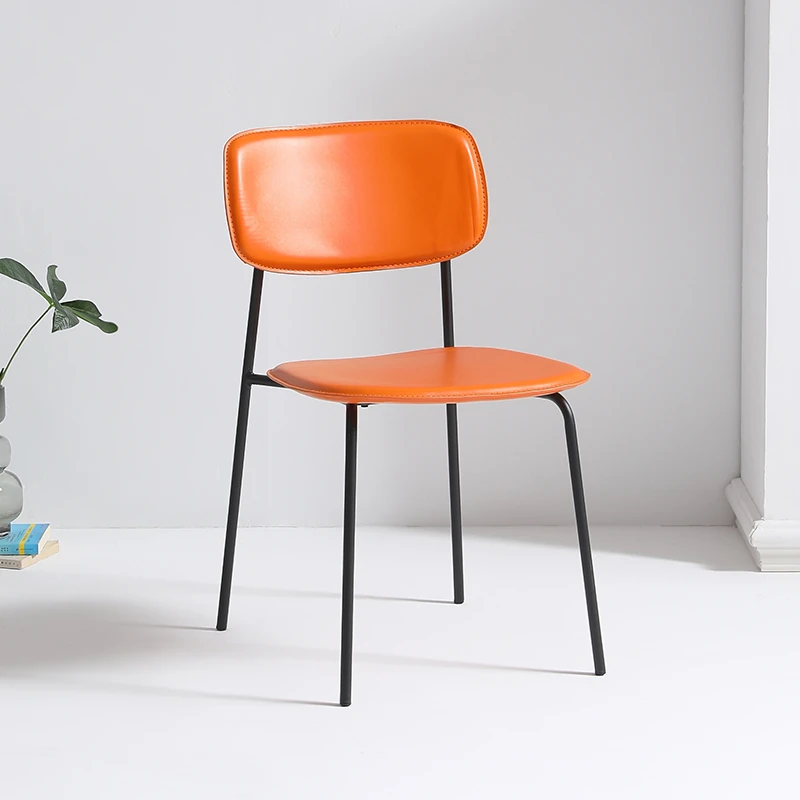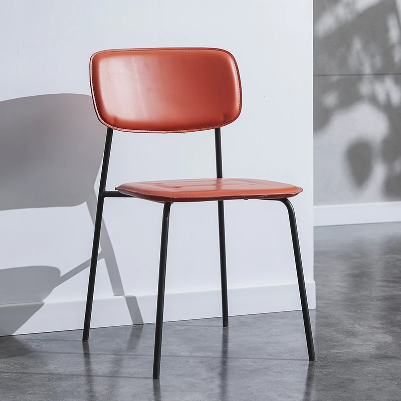 北欧スタイルのシンプルで洗練された背もたれ付きチェア - 軽やかなアイアンフレームとラグジュアリーなサドルレザーを使用したダイニングチェア。家庭用やクリエイティブなリラックススペースにも最適なプラスチックスツールとしてもご利用いただけます。