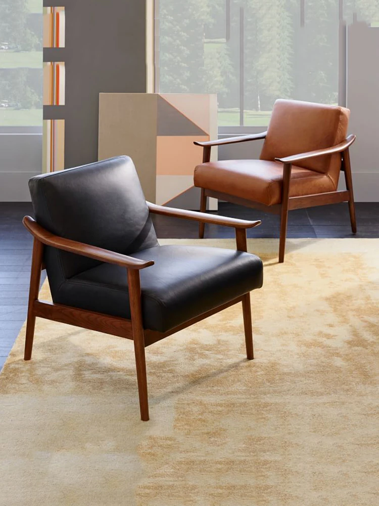 Nordic Minimalist Single Sofa Chair - Modern Solid Wood Lounge Chair for Small Spaces, Perfect for Living Room or Balcony, Designer Accent Chair
