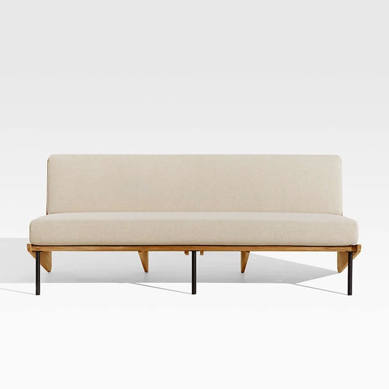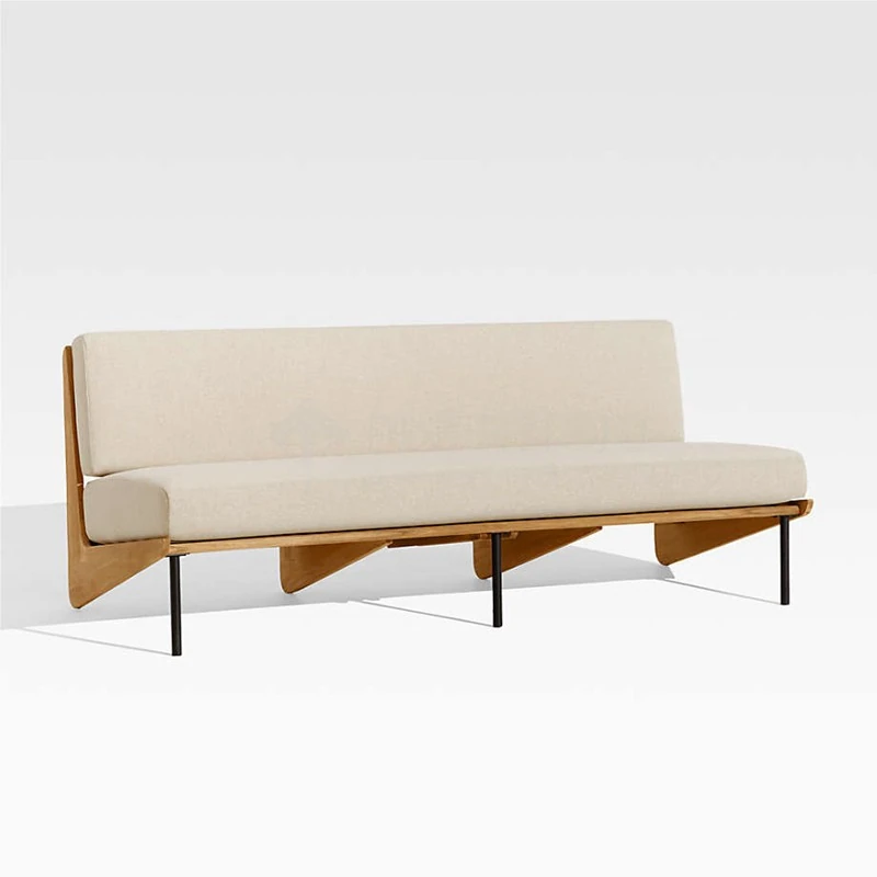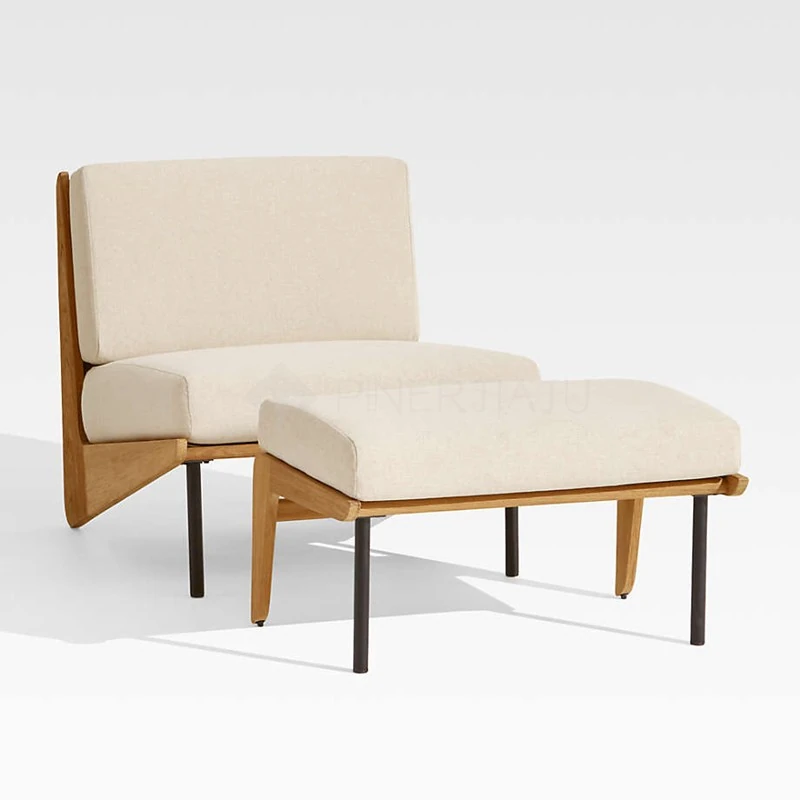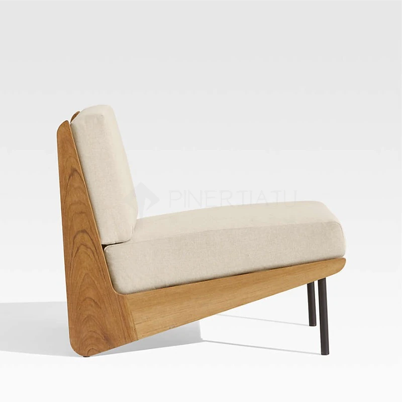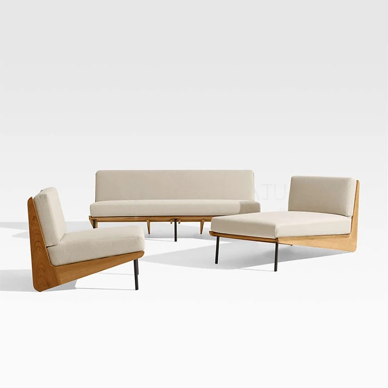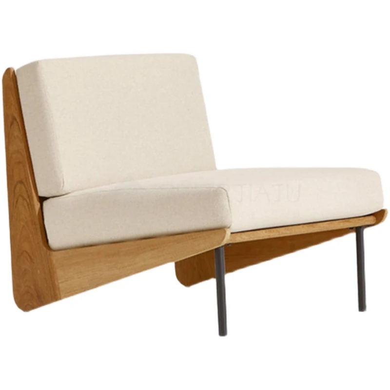 北欧スタイルのシンプルな民宿用実木ソファチェア、侘寂の美学を感じるリビングルームのサンプルルームにぴったり!アームレストなしの布製ソファセットで、洗練された空間を演出します。