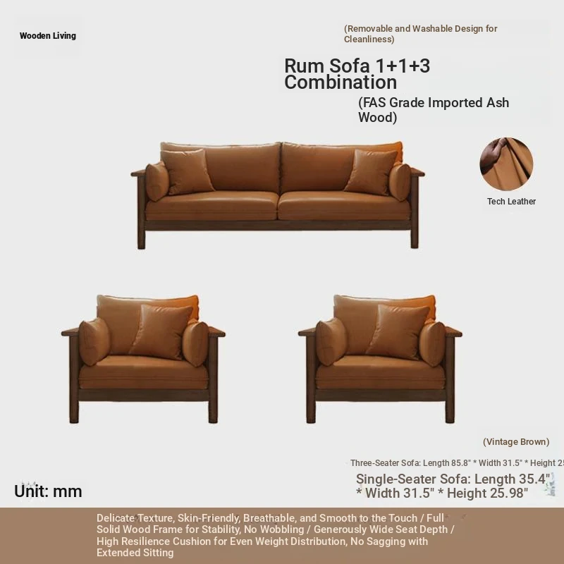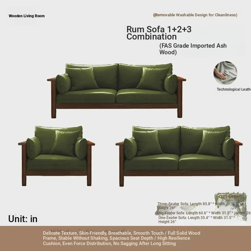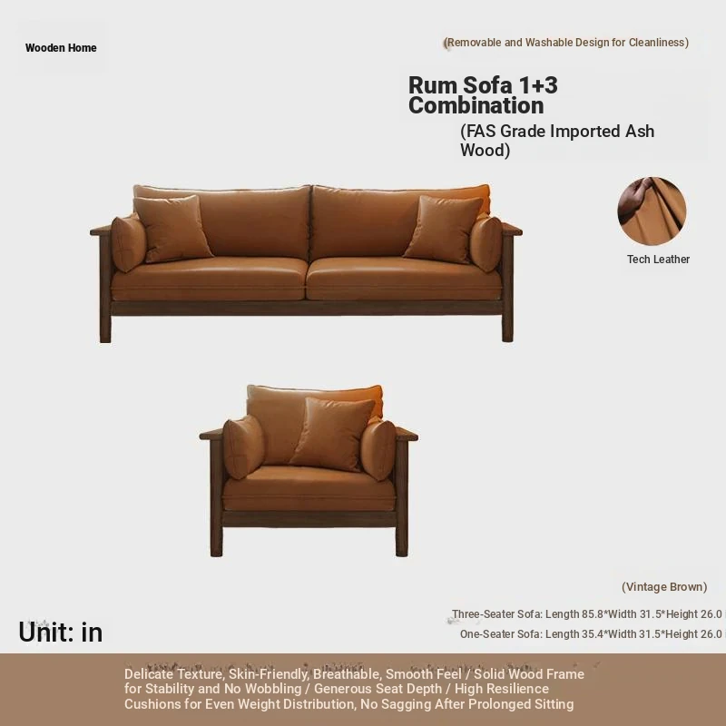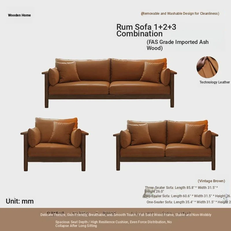Nordic Solid Wood and Leather Sofa - Minimalist Retro Japanese Style Living Room Furniture Made from Ash Wood for Small Spaces - Perfect for Modern Home Decor