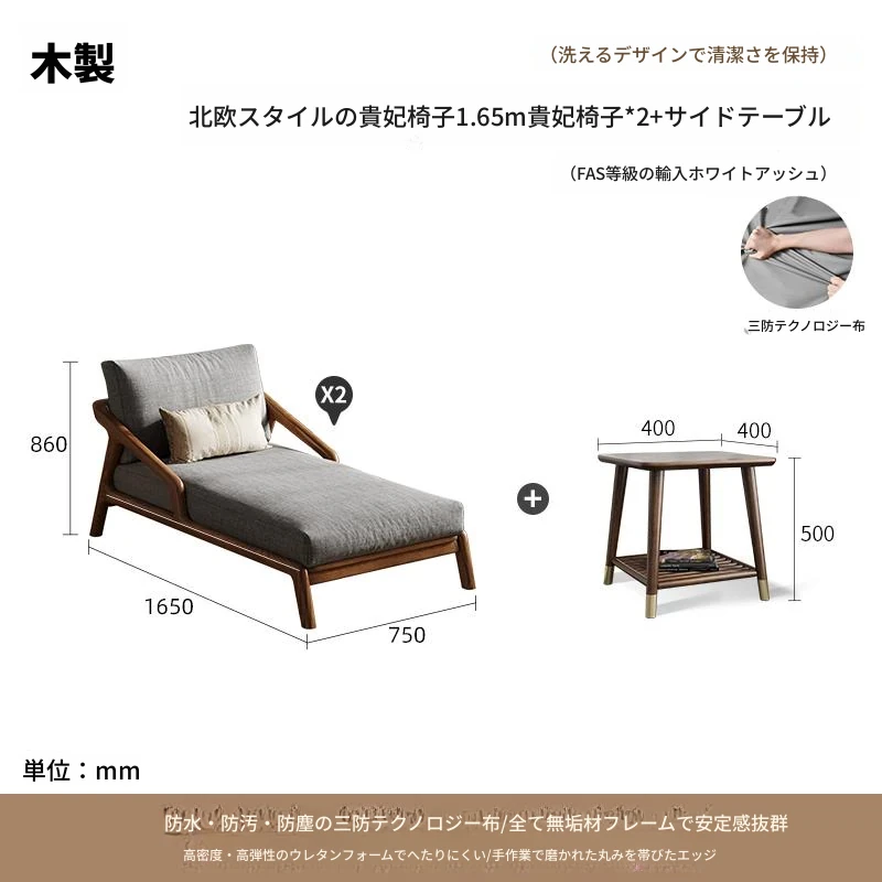 貴妃椅1.6m+角テーブル0.4m丨テクノロジー布丨