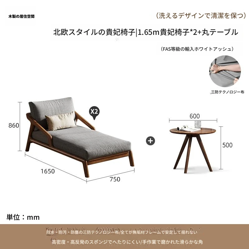 貴妃椅1.6m+丸テーブル0.6m丨テクノロジー布丨