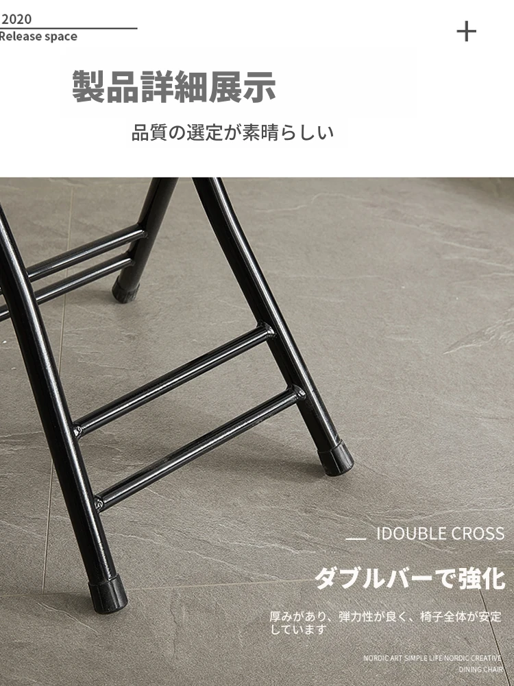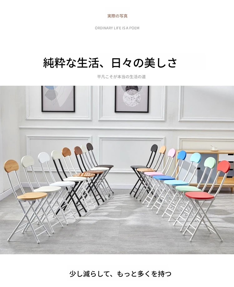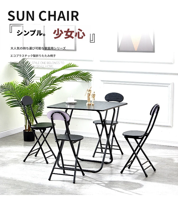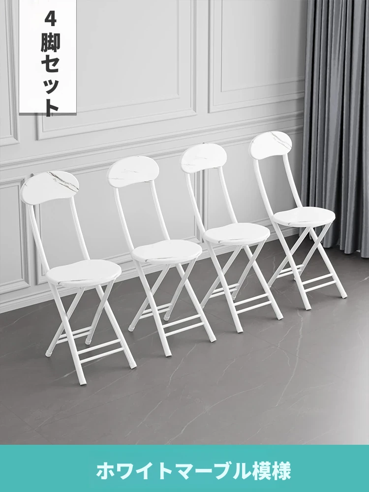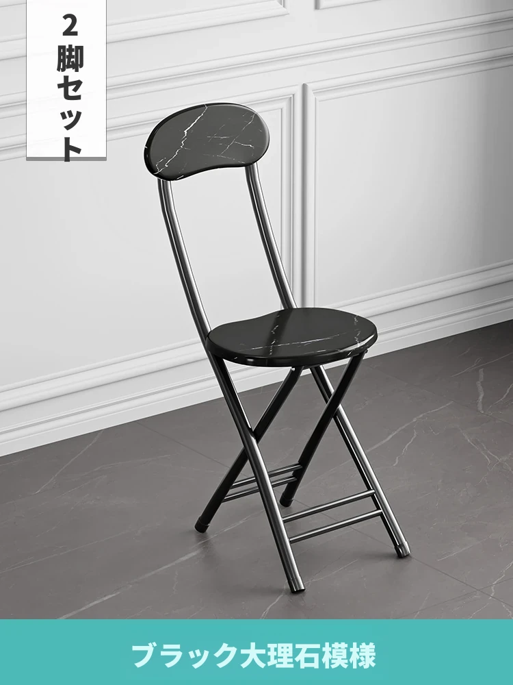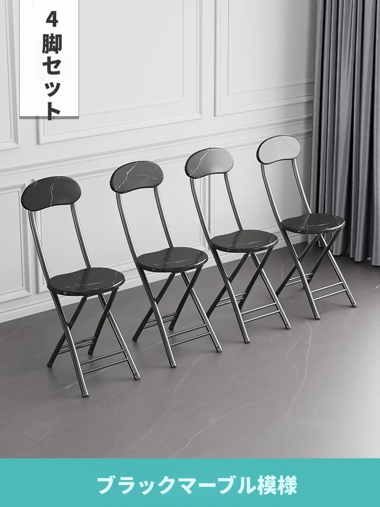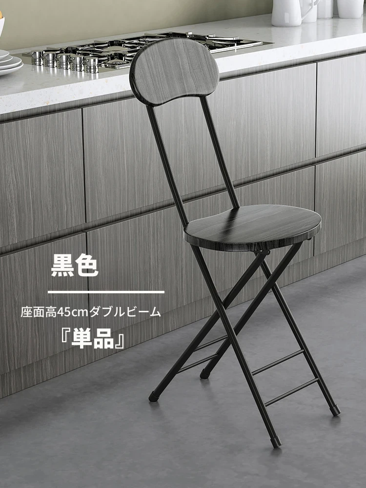 北欧スタイルのモダン折りたたみ式ダイニングチェア - シンプルで洗練されたデザイン、快適な背もたれ付き、人気の書斎用にも最適!アイアン製で頑丈、食事の時間がもっと特別に。